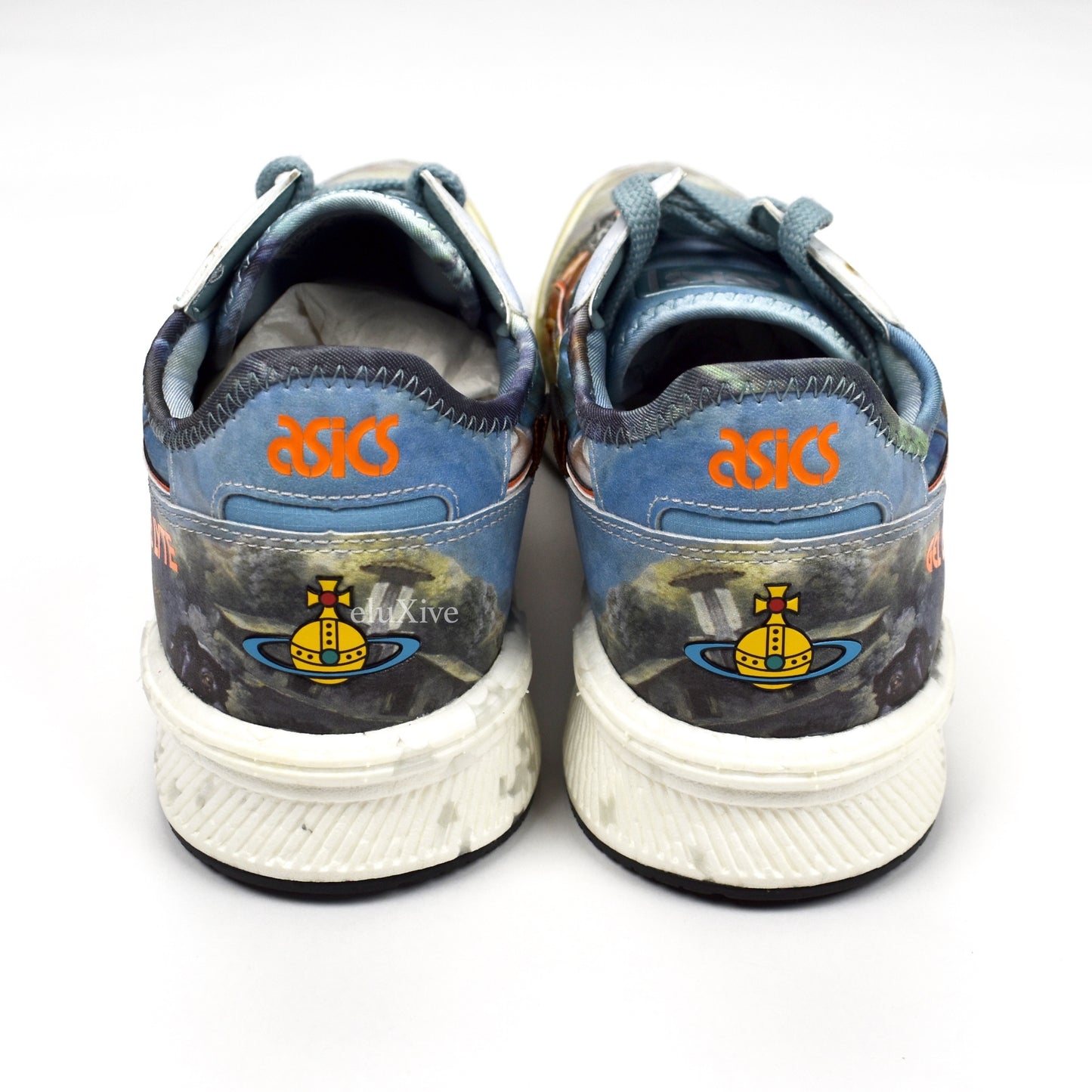 - Multicolor Vivienne Westwood orb logo and orange 'Asics' on back heel