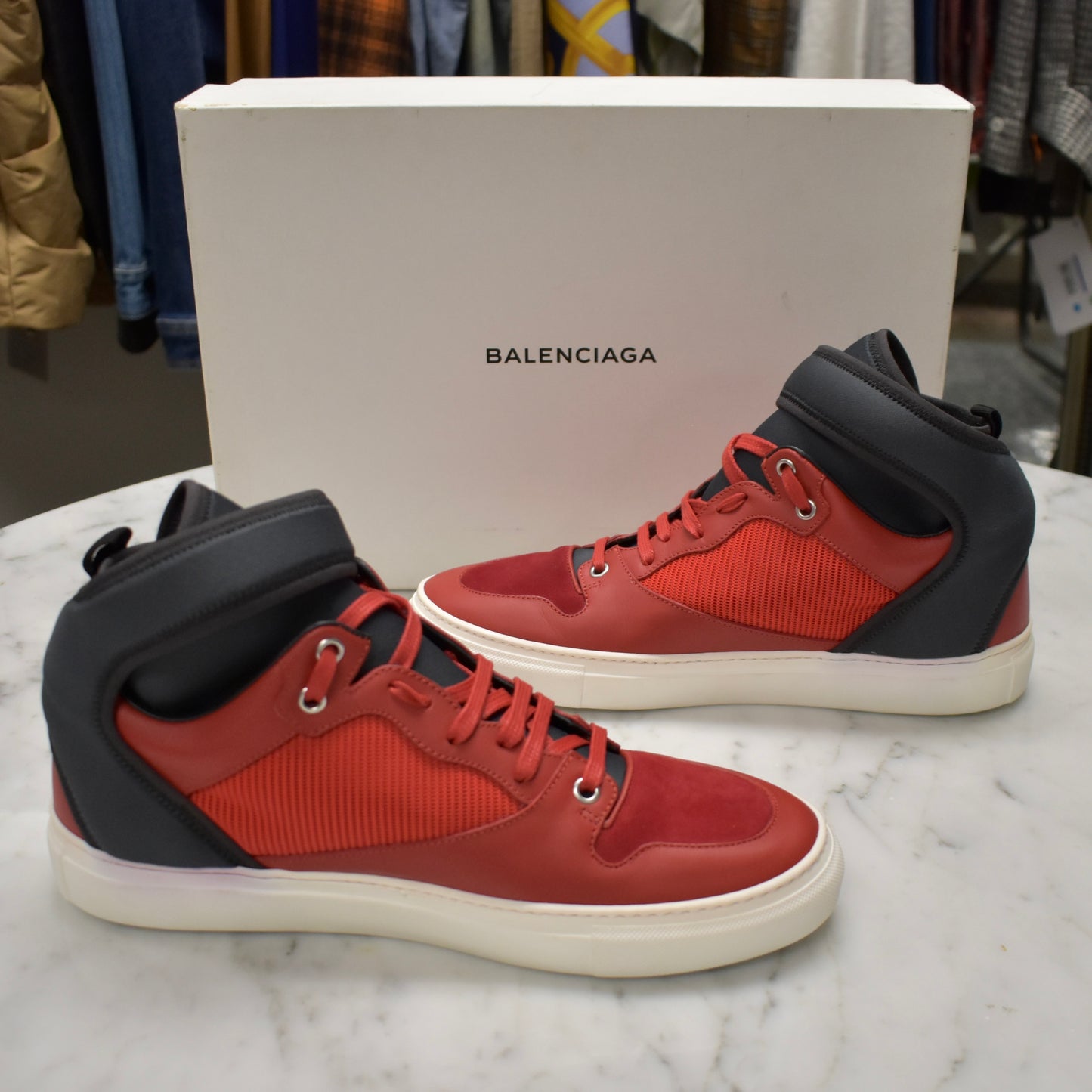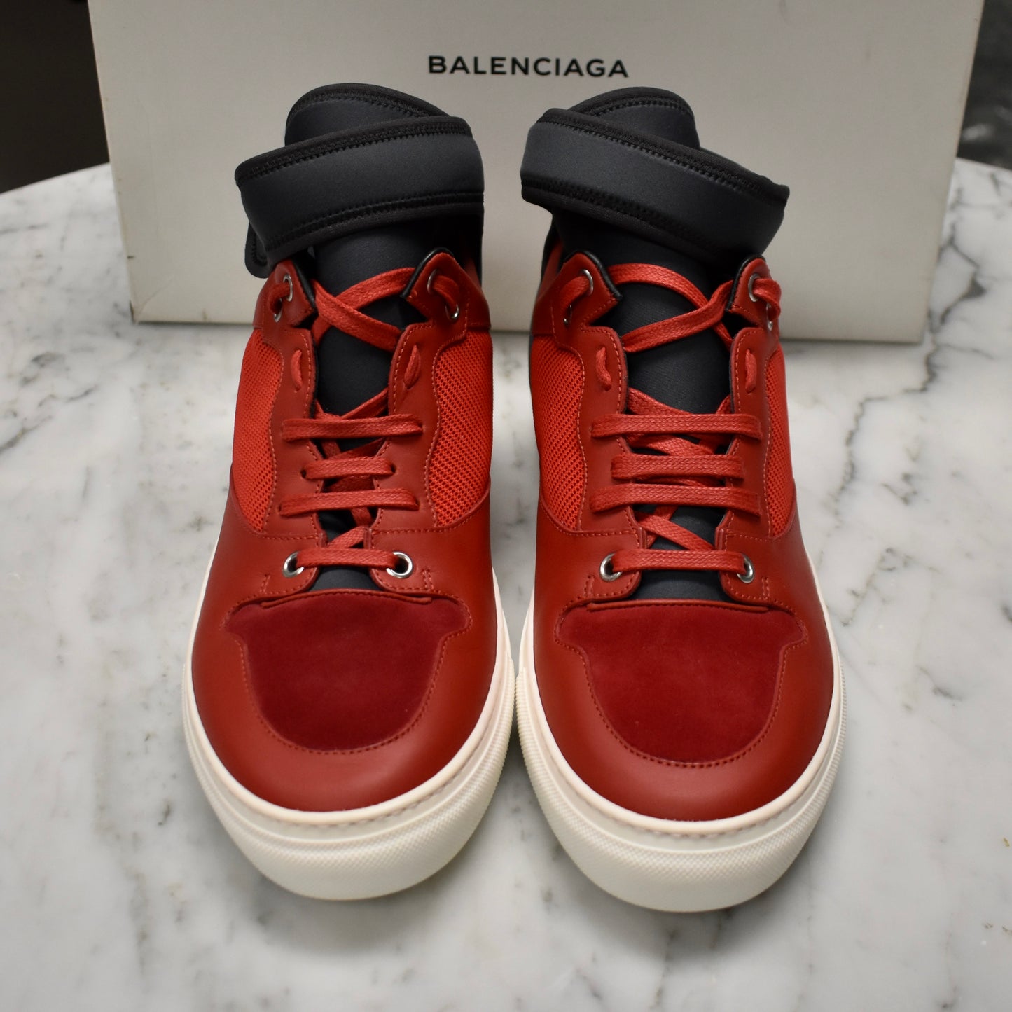 Balenciaga - Red / Navy Multi Material Mid Top Sneakers