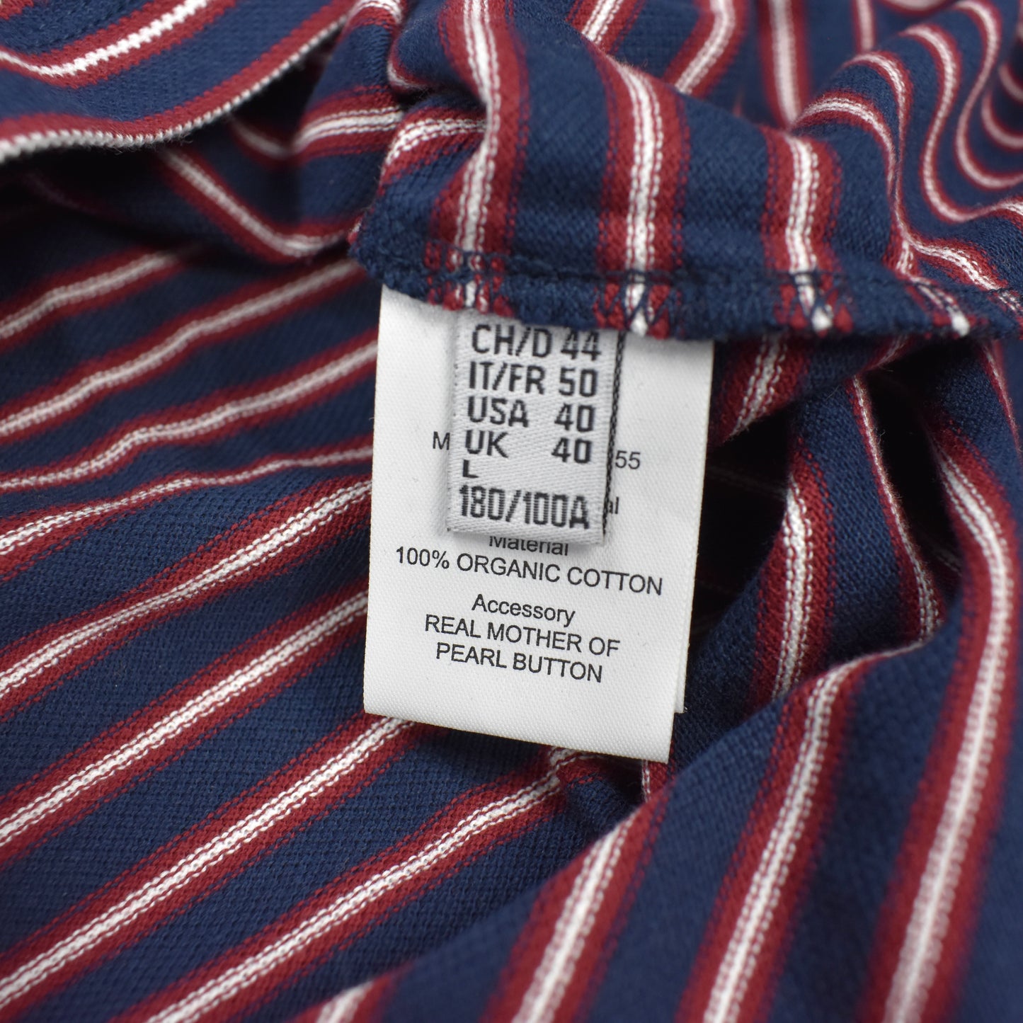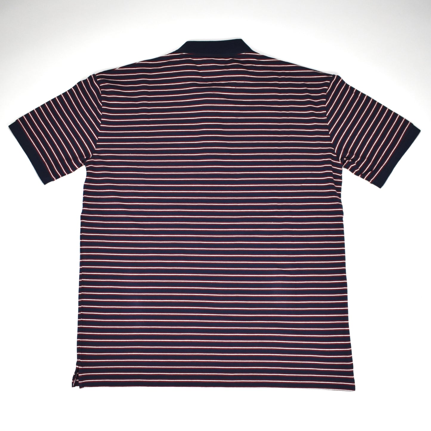 - Navy blue 100% organic cotton pique knit with web logo stripe pattern