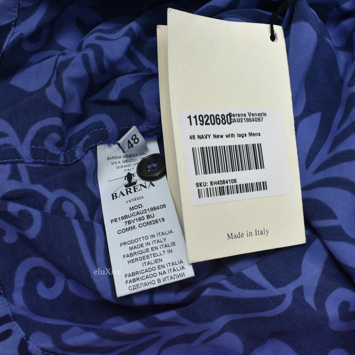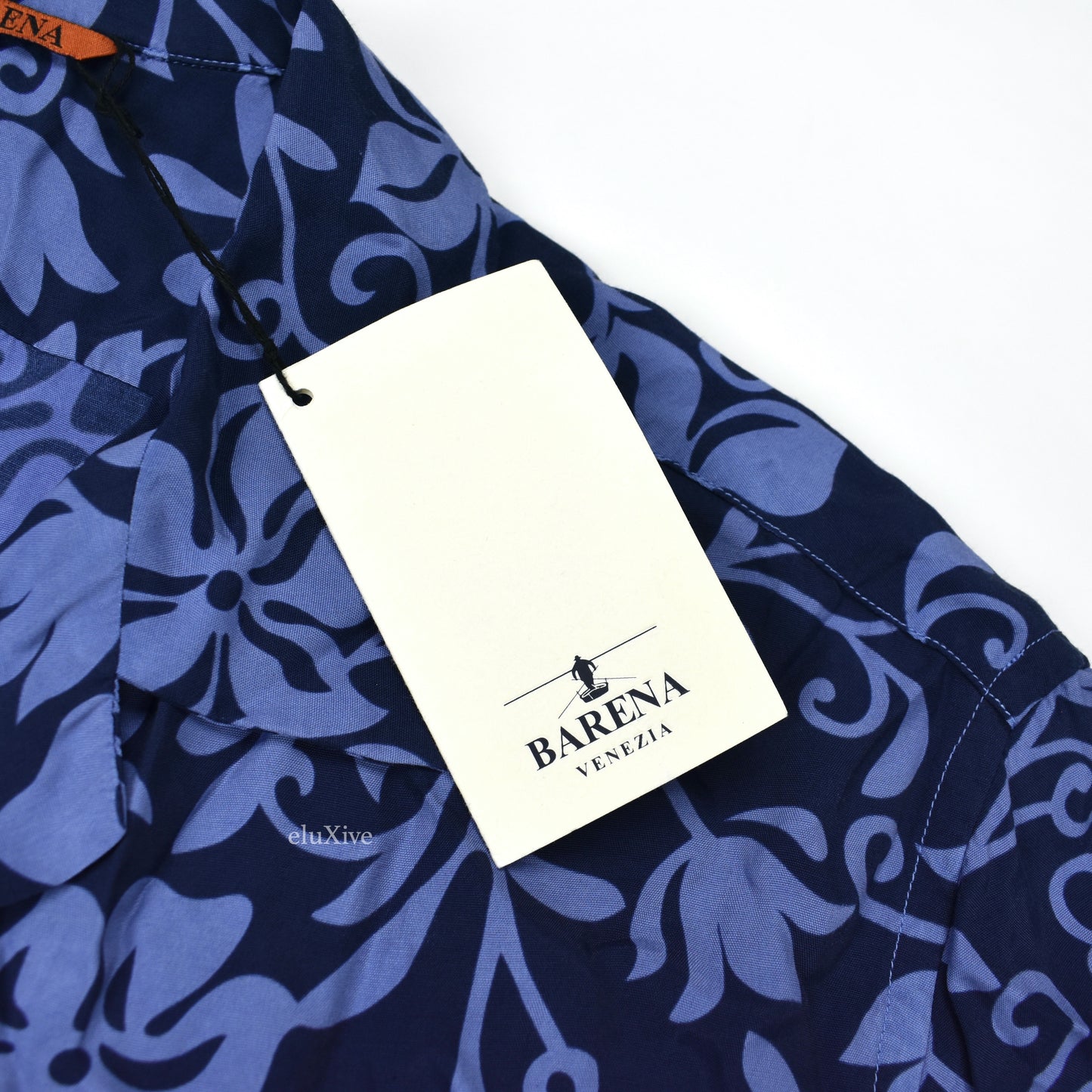 Barena - Blue Viscose Floral Hawaiian Shirt