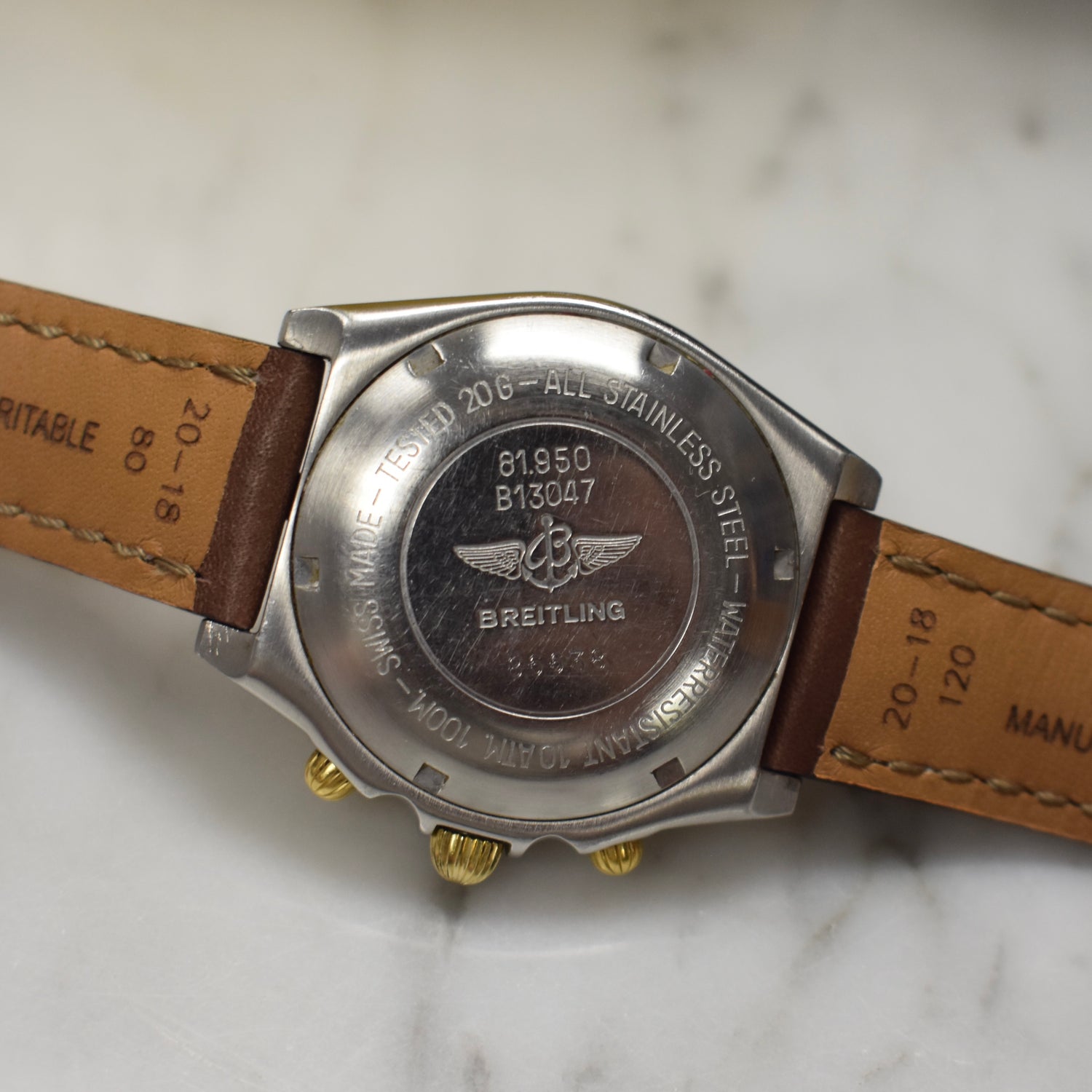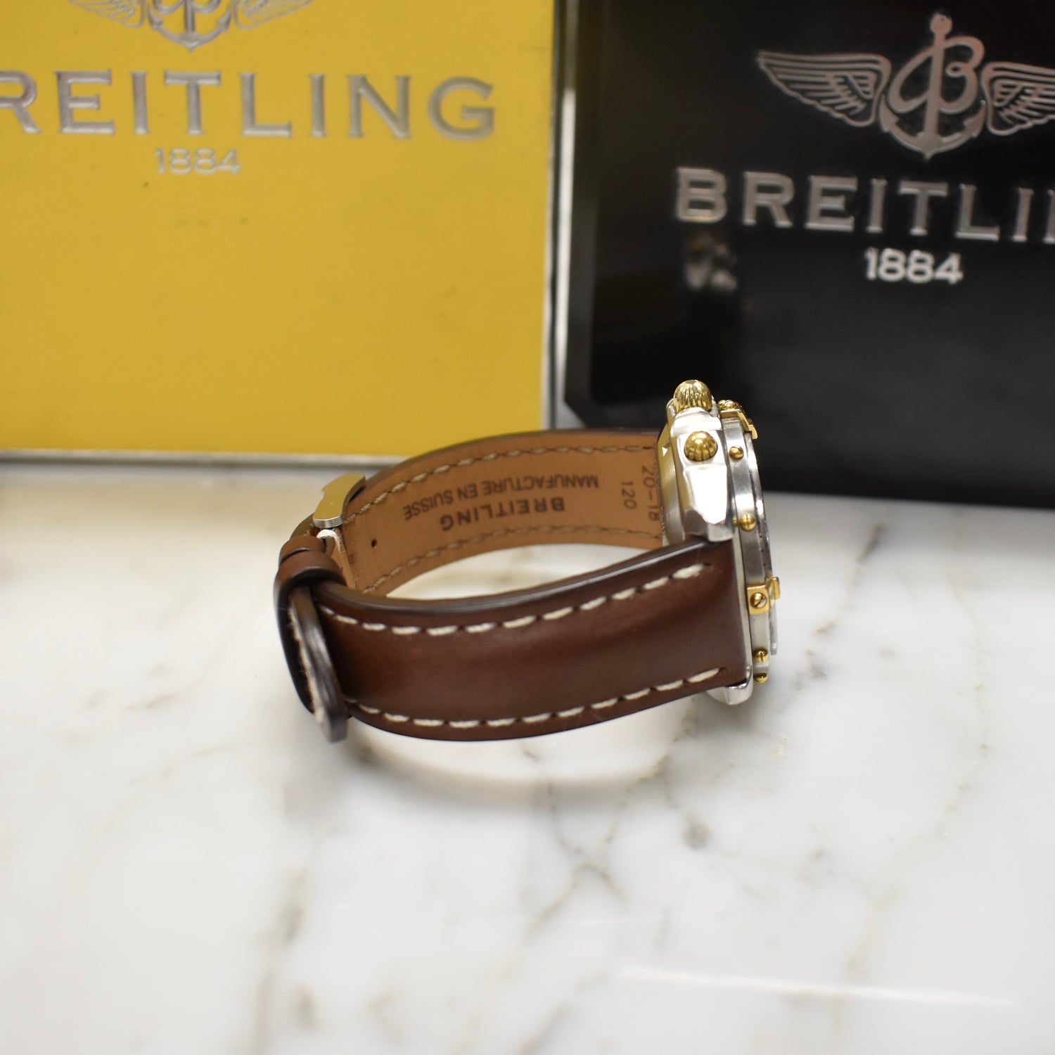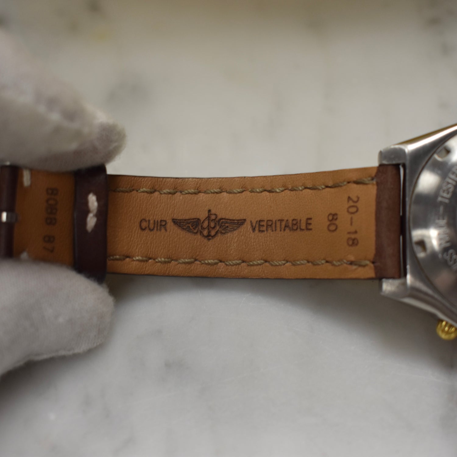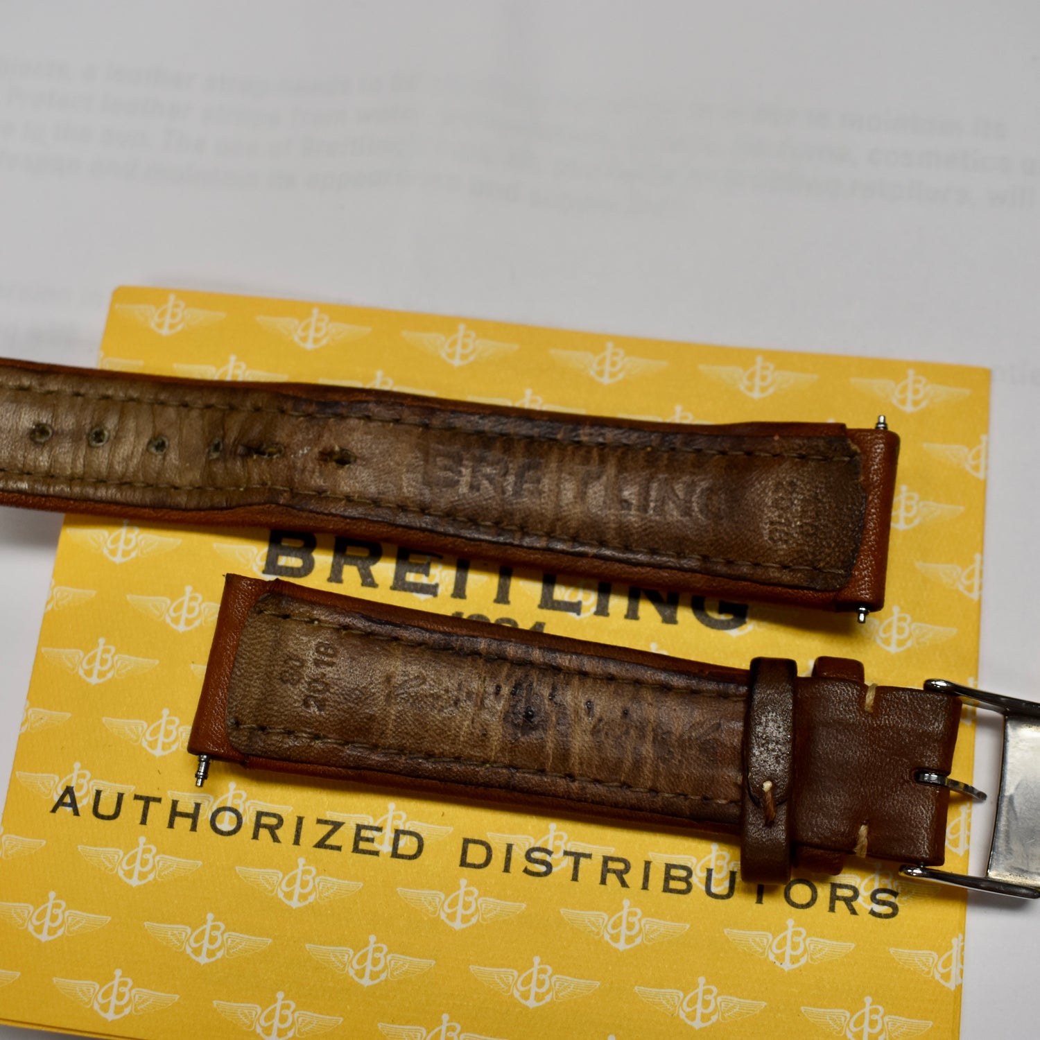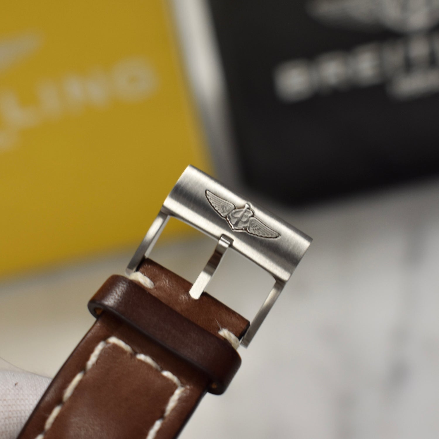 - Brown Napa leather genuine Breitling band and brushed steel buckle (replaced February 2024)