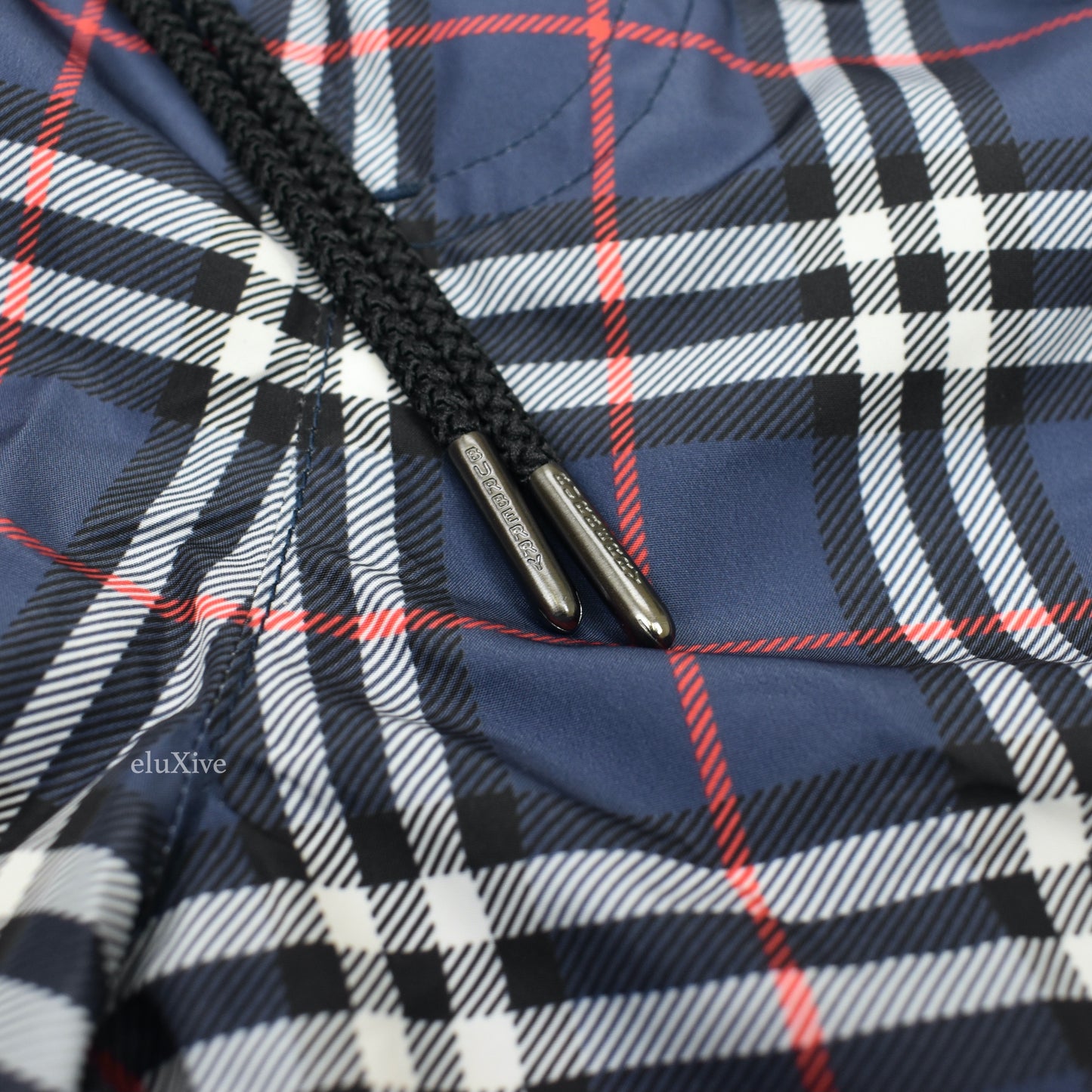 - Lightweight nylon with allover printed navy Burberry archive check pattern
