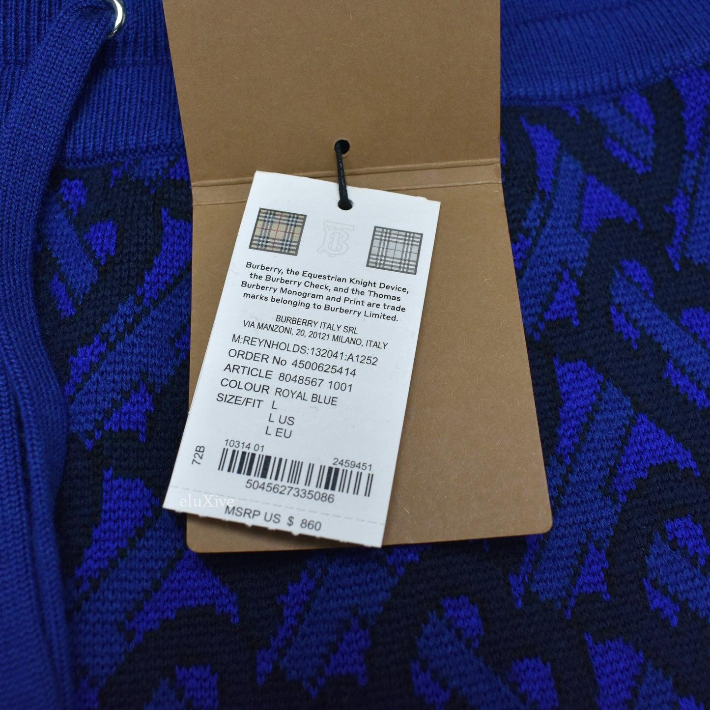 - Thick blue 100% wool with allover knit TB monogram logo pattern
