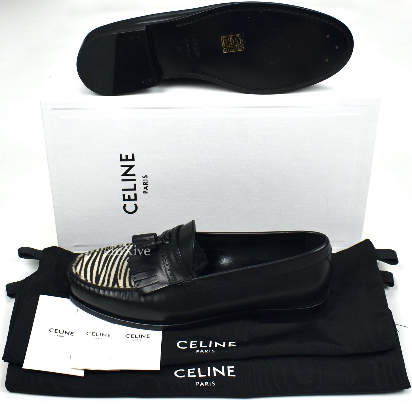 Celine - Black Leather Zebra Toe Tassel Loafers
