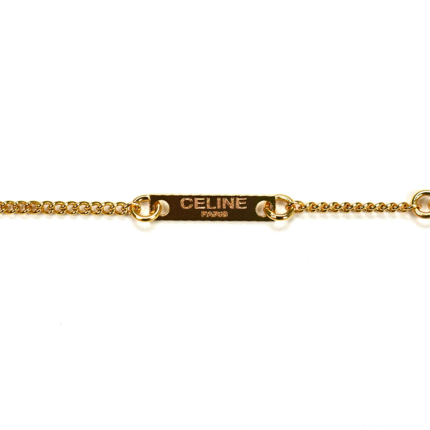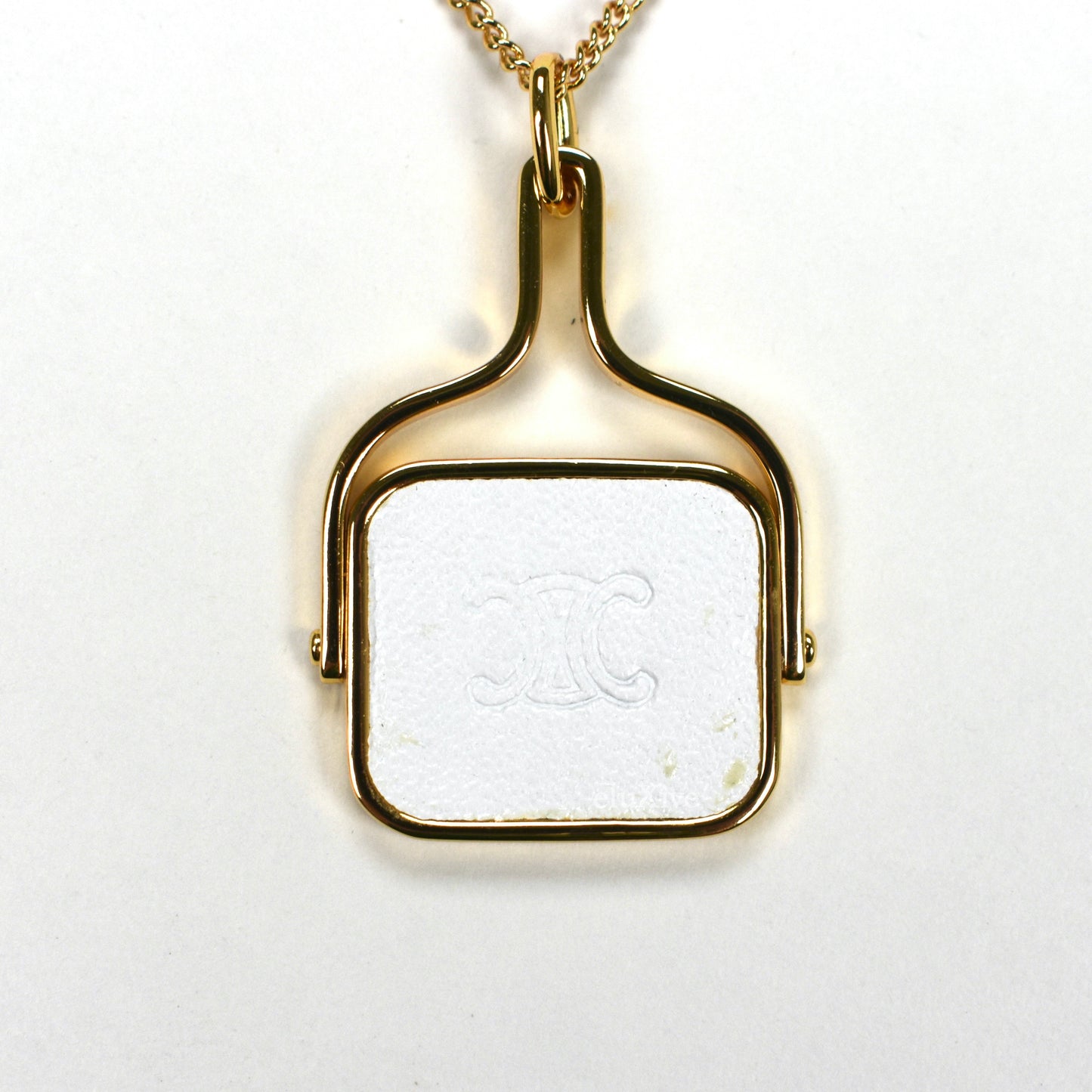 - Gold-tone metal pendant with Celine logo embossed in white leather