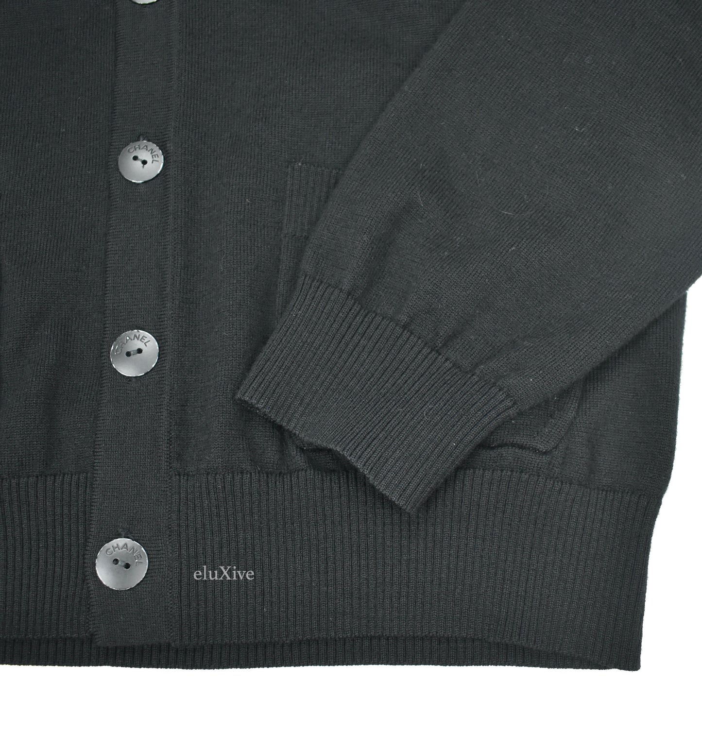 Chanel - Black 100% Wool Logo Patch Uniform Cardigan