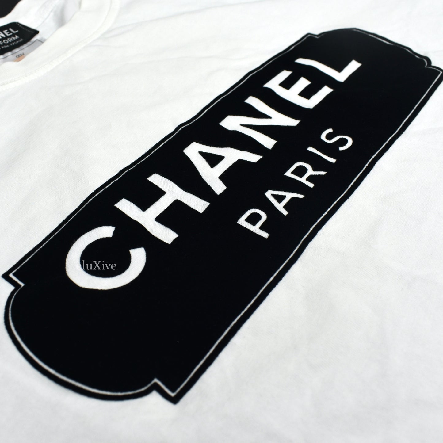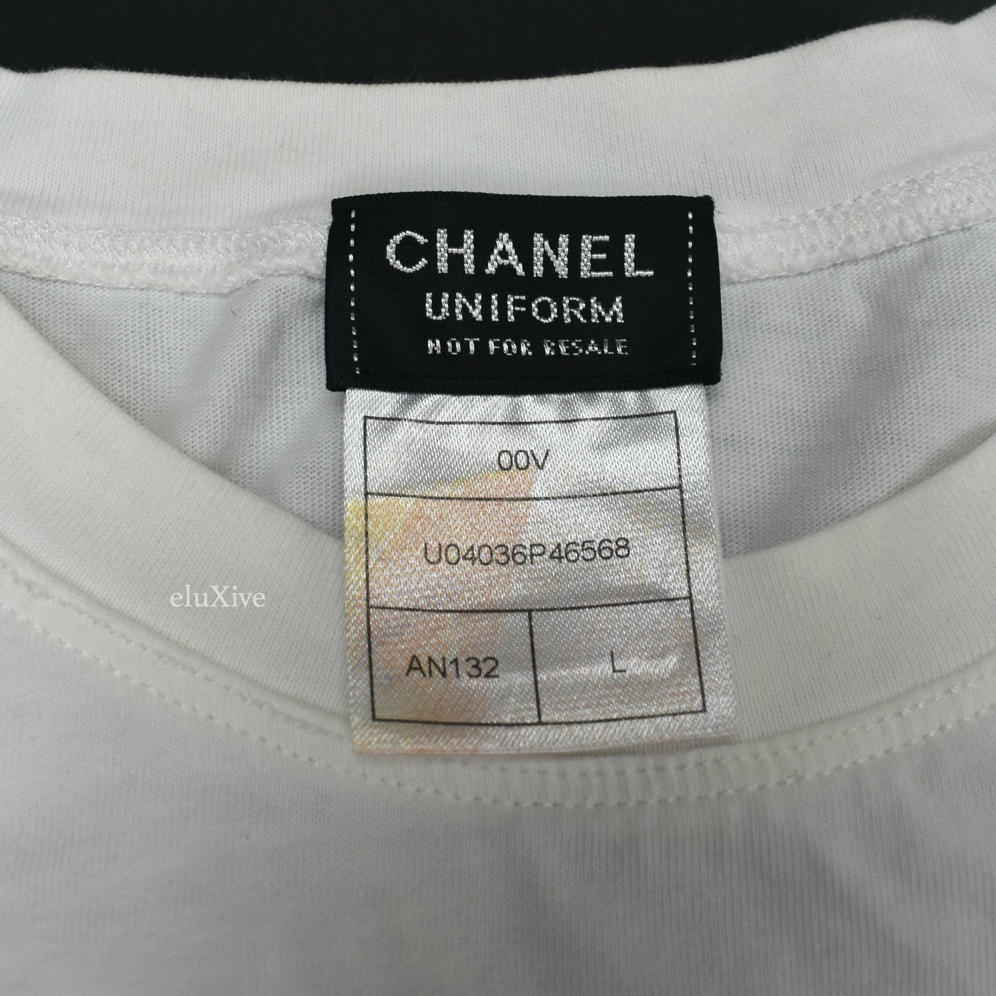 Chanel - White Velvet Logo L/S Crewneck Uniform T-Shirt