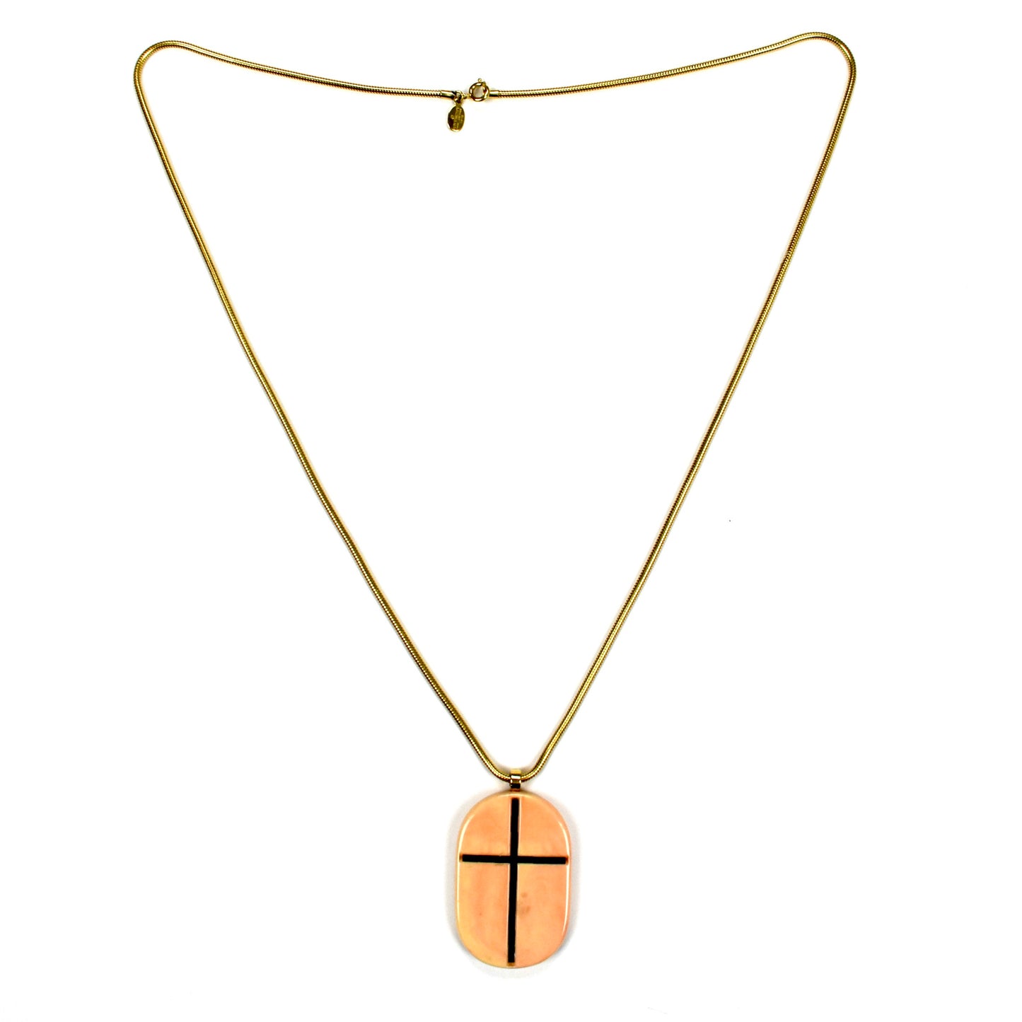 Givenchy - 1976 Runway Faux Ivory Cross Pendant Necklace