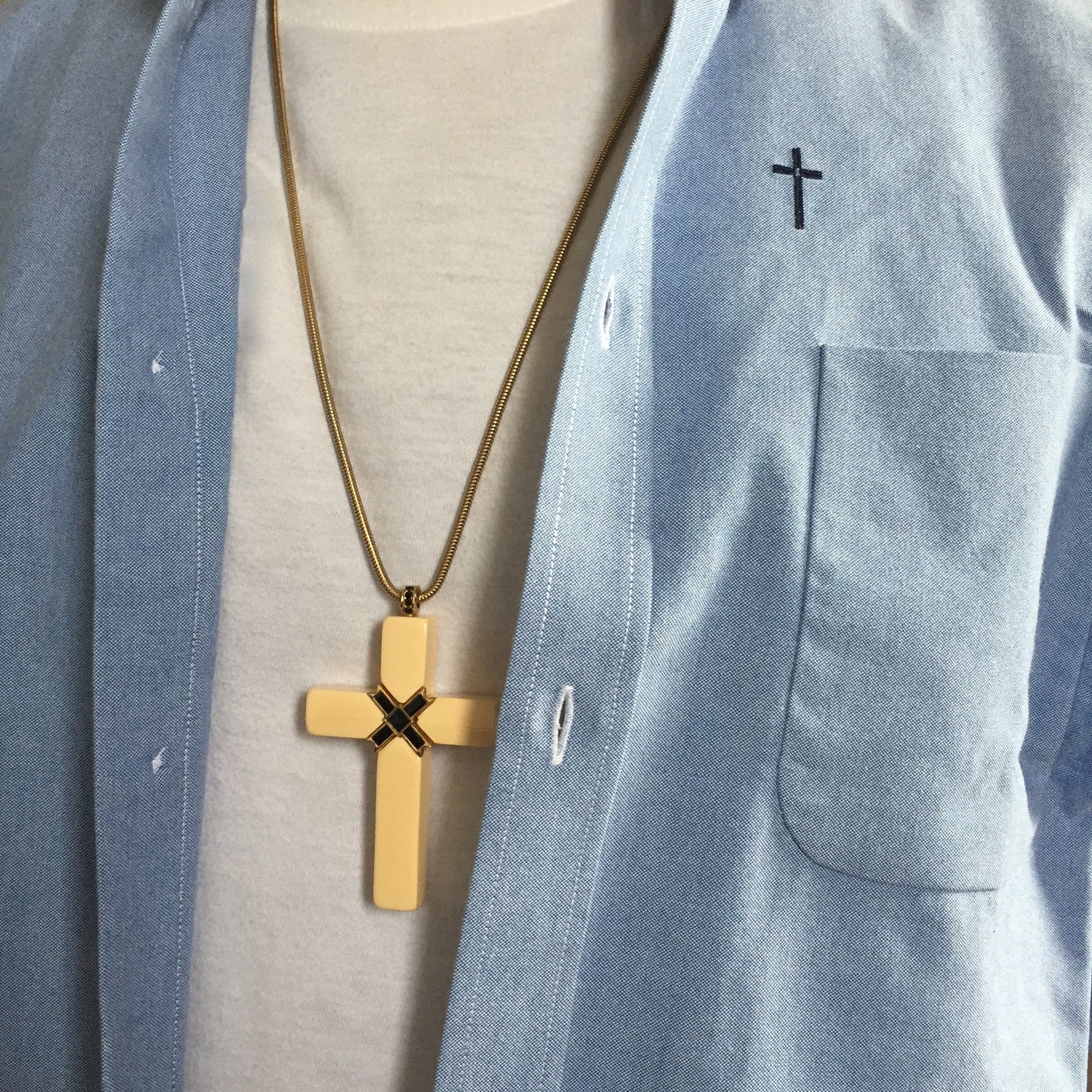 - 1976 Givenchy Cross pendant is shown as a styling suggestion and is available separately