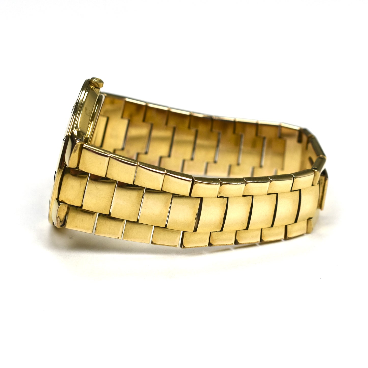 - Pre-owned, good condition. Gold plating has some wear and crystal is scratched
