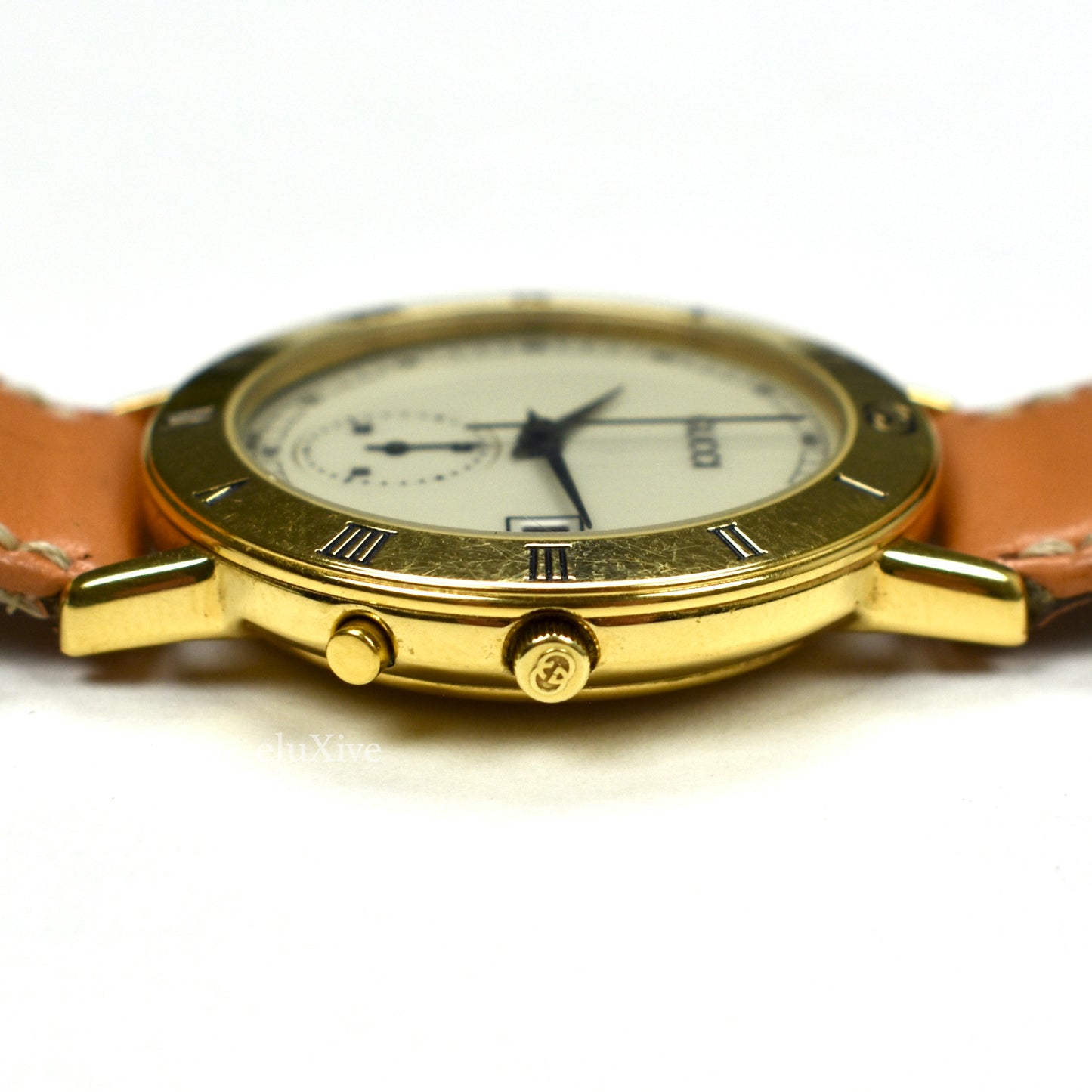 Gucci - 3800M Gold Cream Dial Chronograph Watch