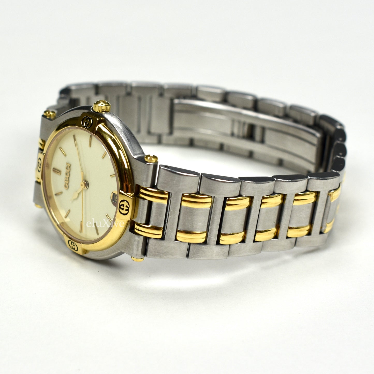 Gucci - 9000M Gold / Steel Cream Dial Watch (Solid Links)