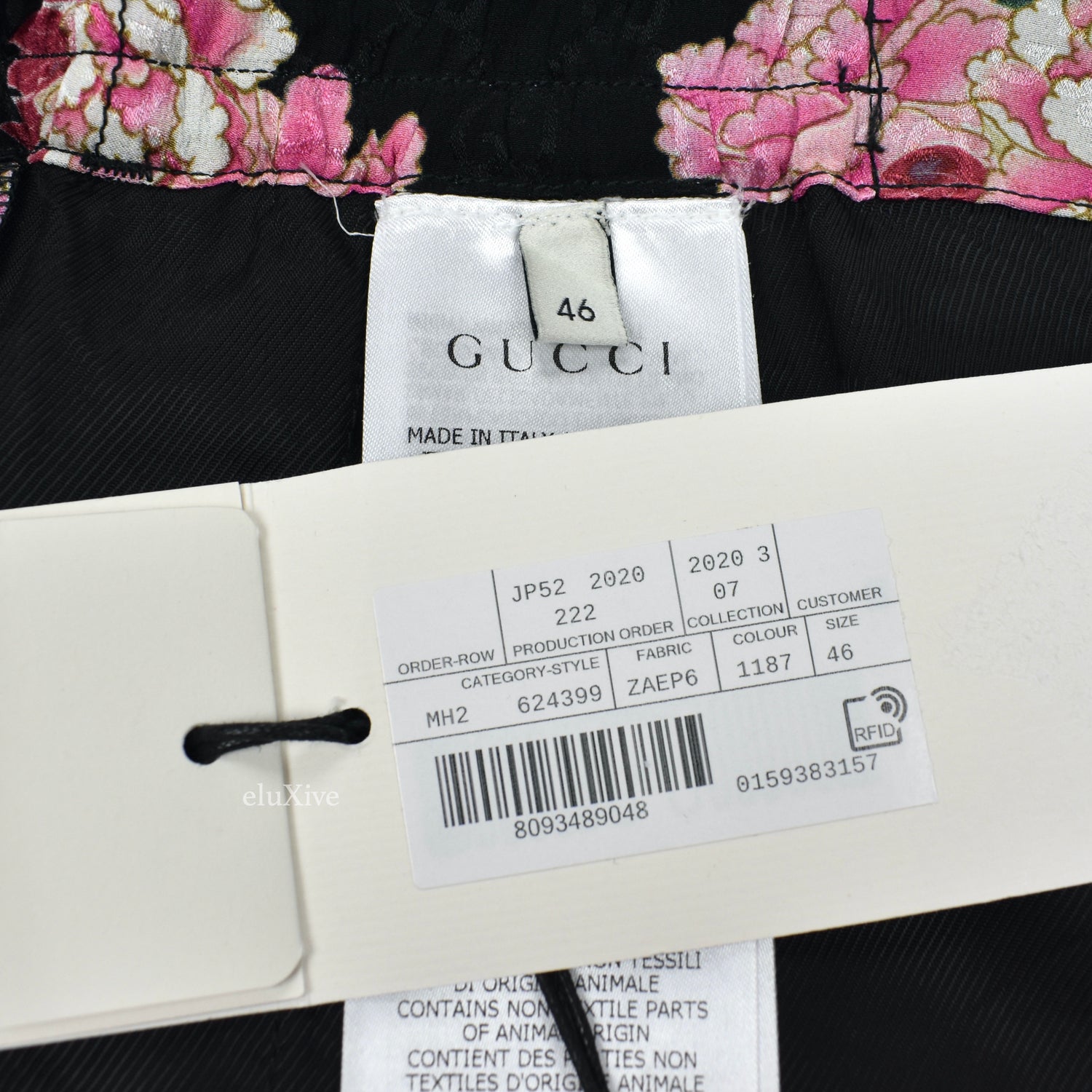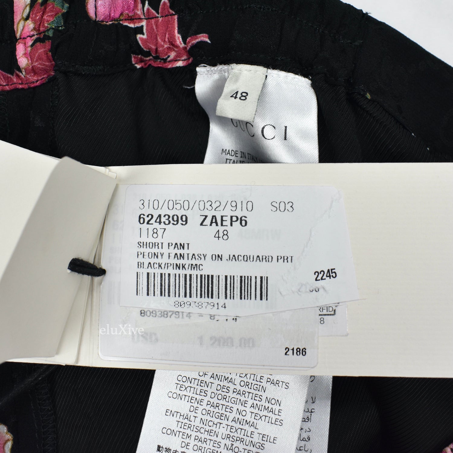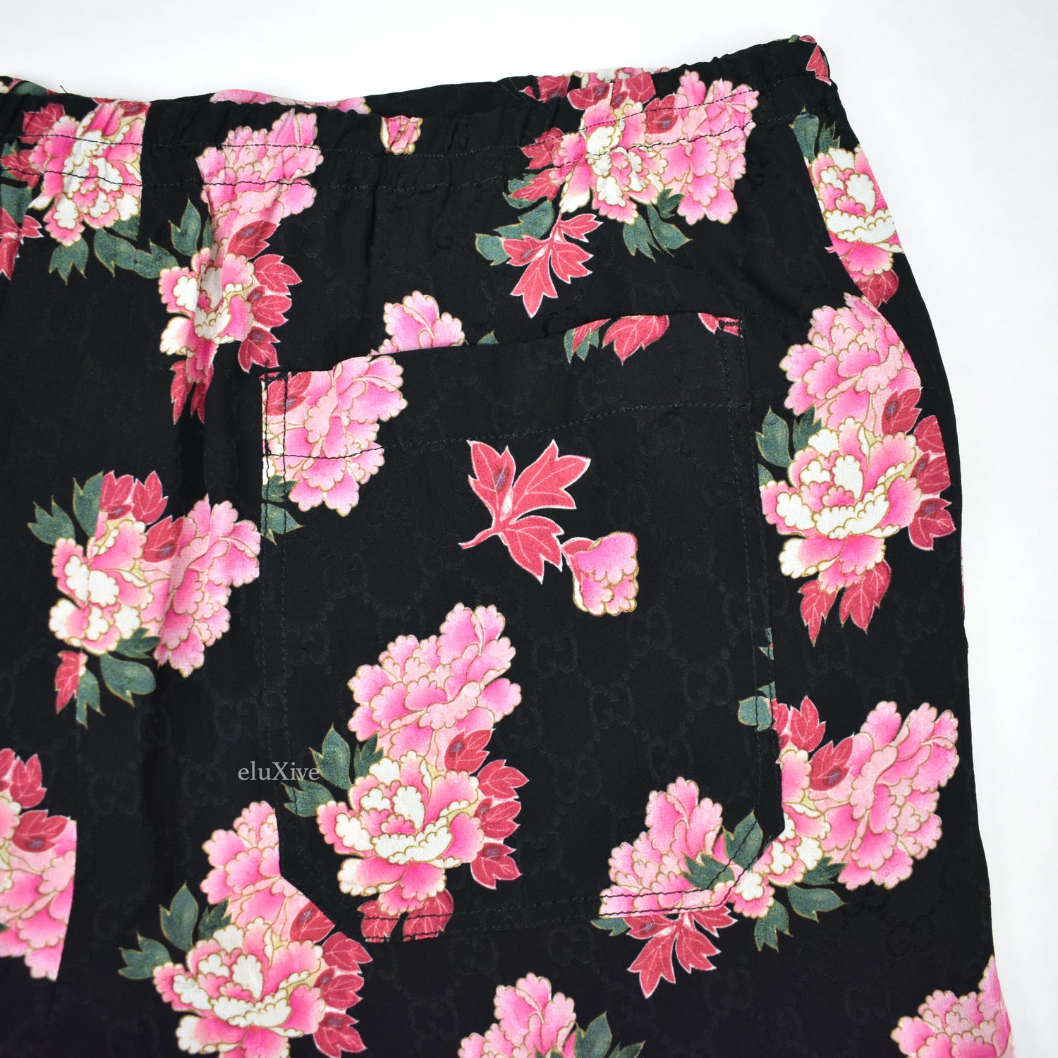 - Allover woven Gucci GG logo and peony blooms pattern