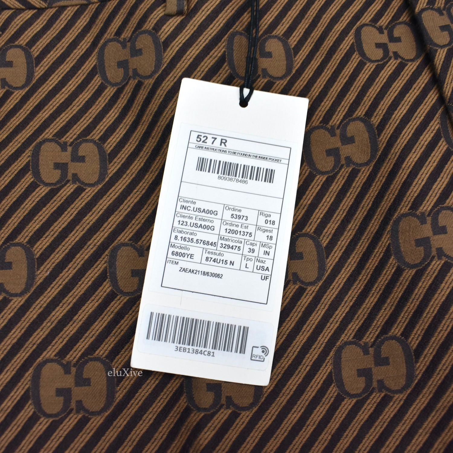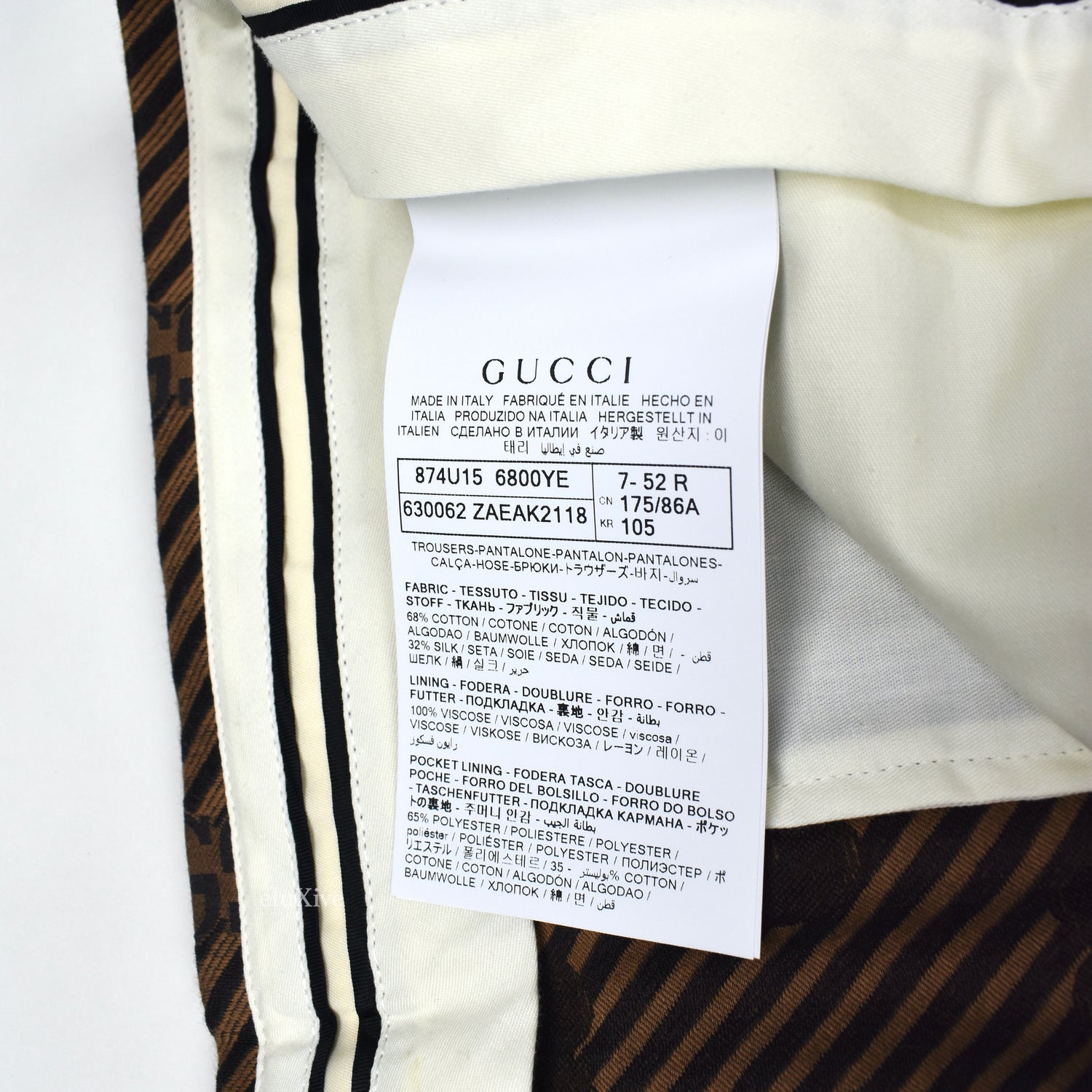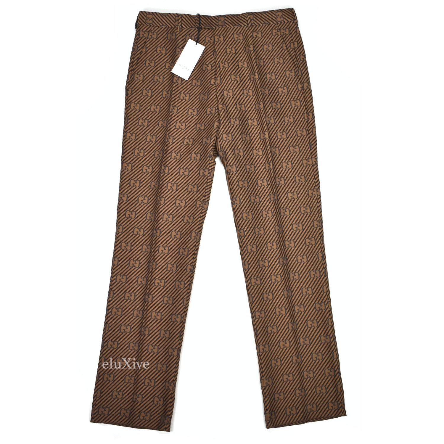 Gucci - Brown Diagonal Stripe GG Monogram Woven Pants