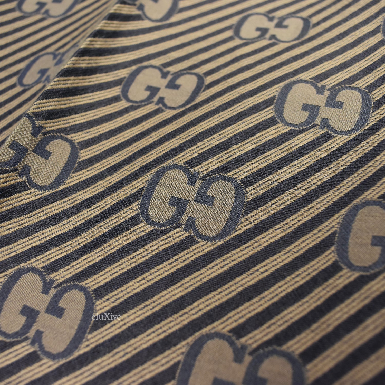 - Allover woven diagonal stripes and GG monogram pattern