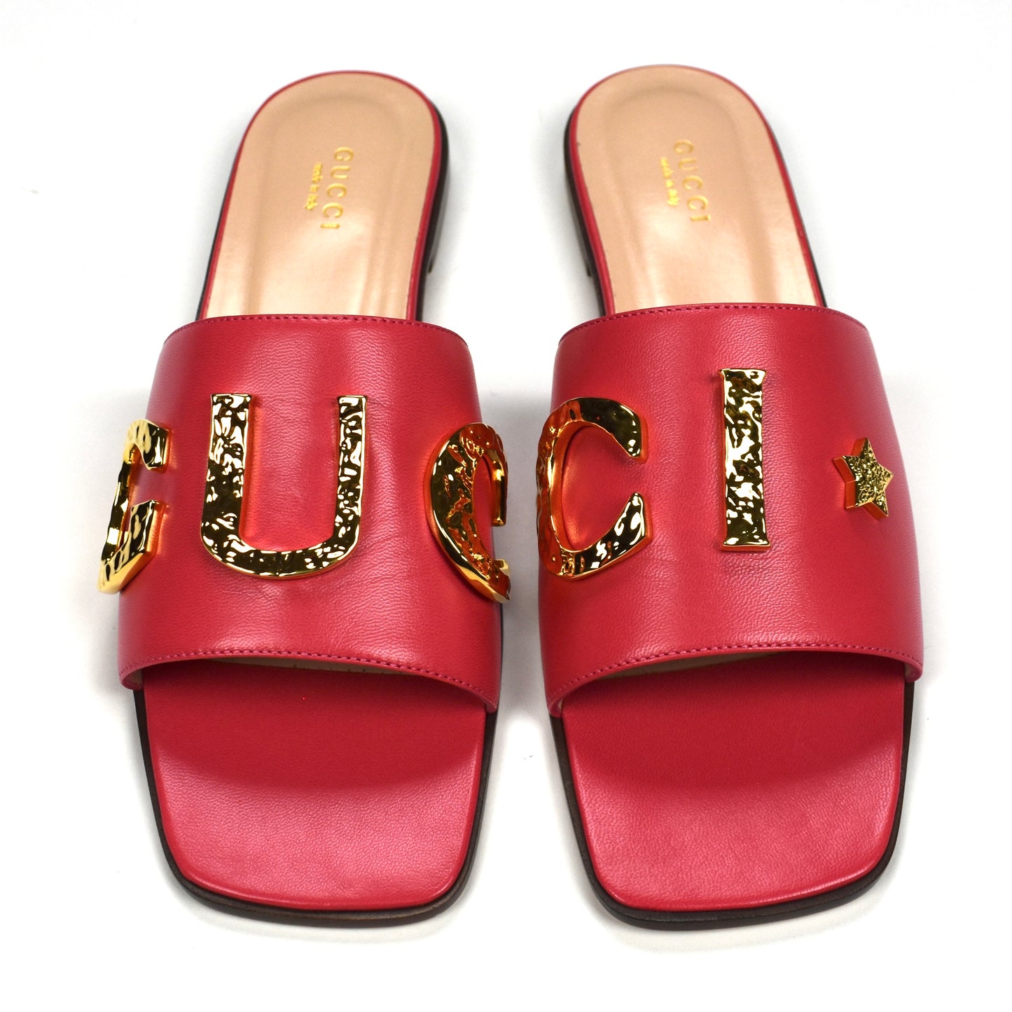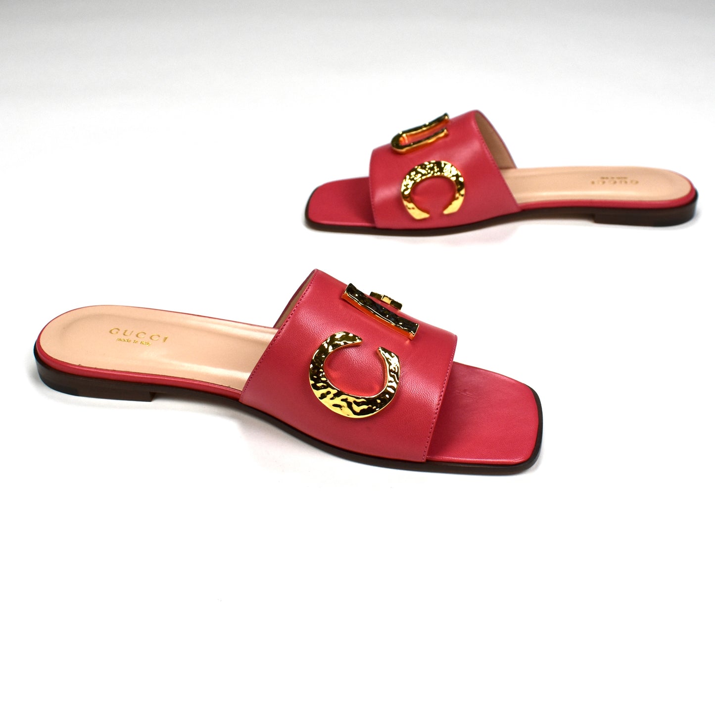 Gucci - Gold Logo Cara Slides (Runway Coral)