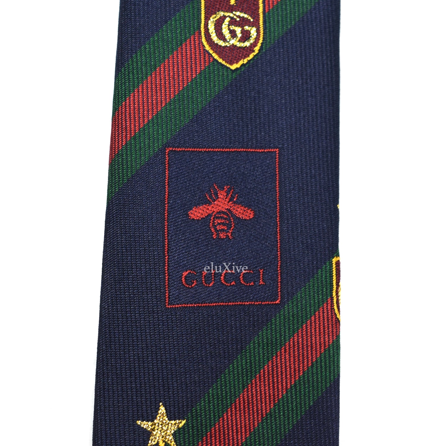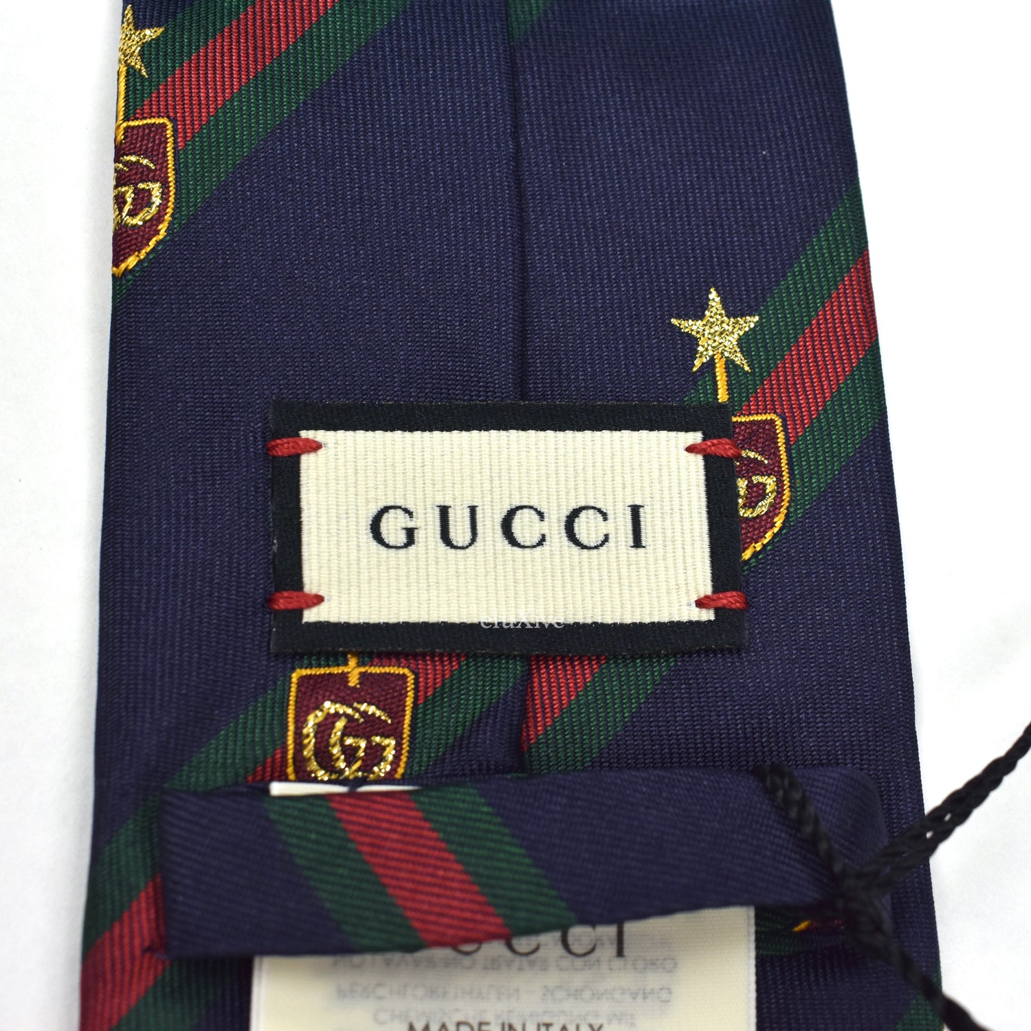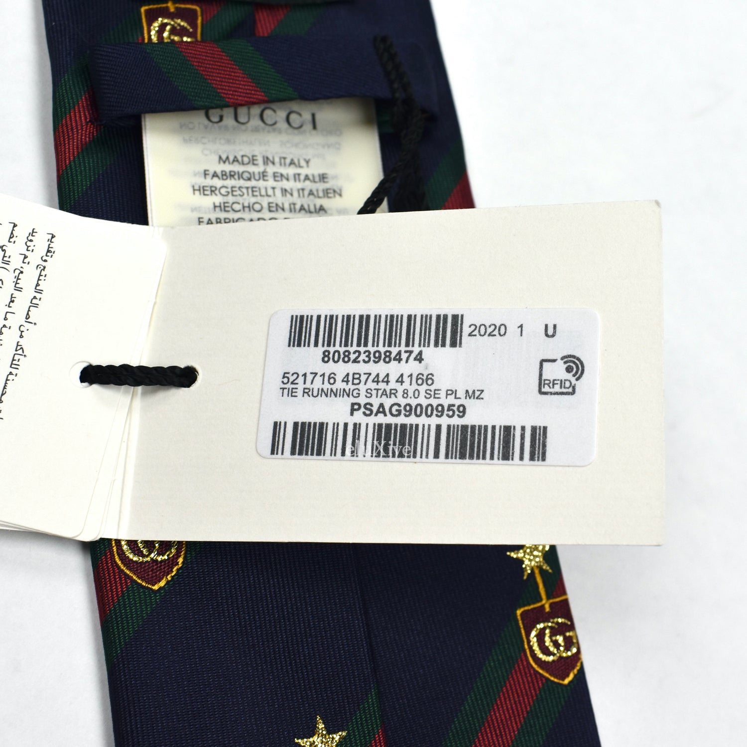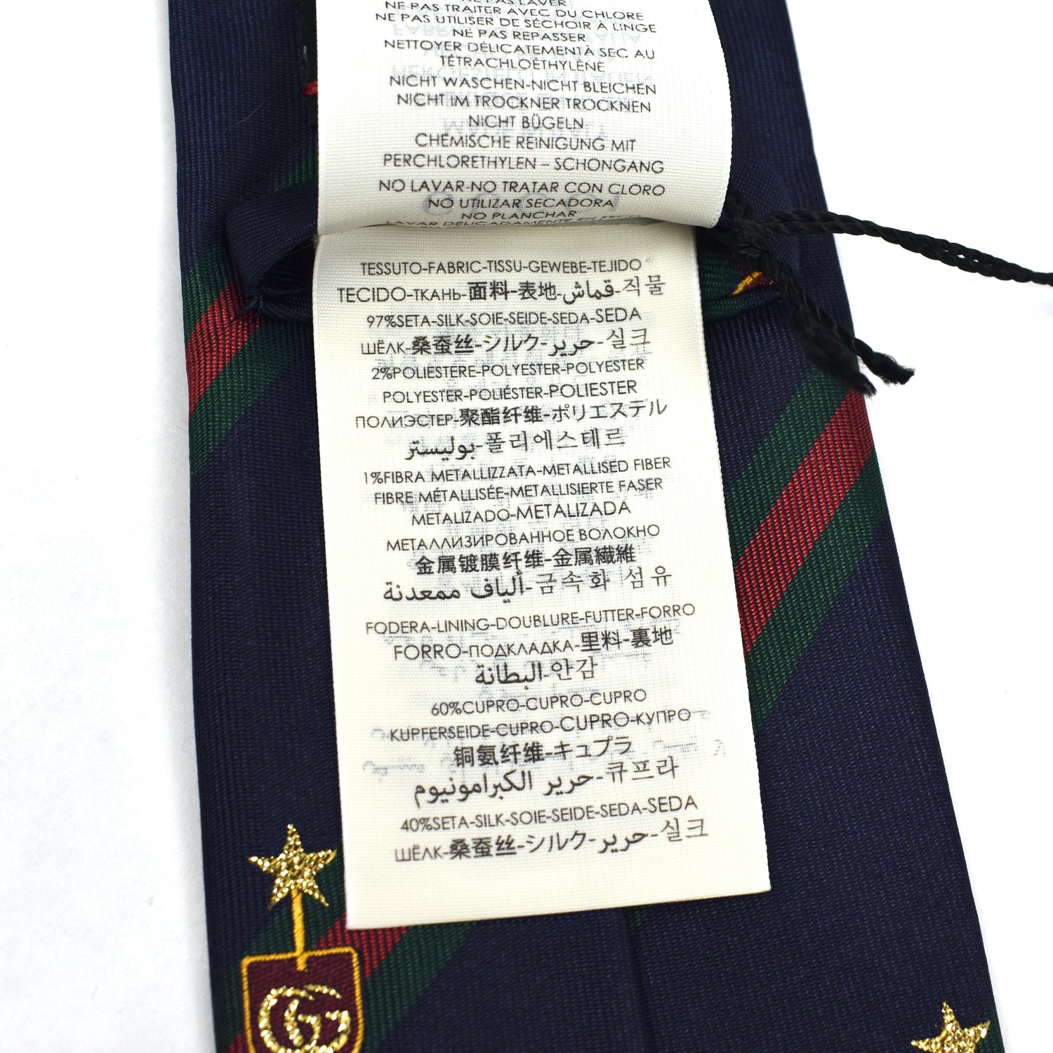 - Navy blue 100% silk fabric with classic green and red Gucci web stripes