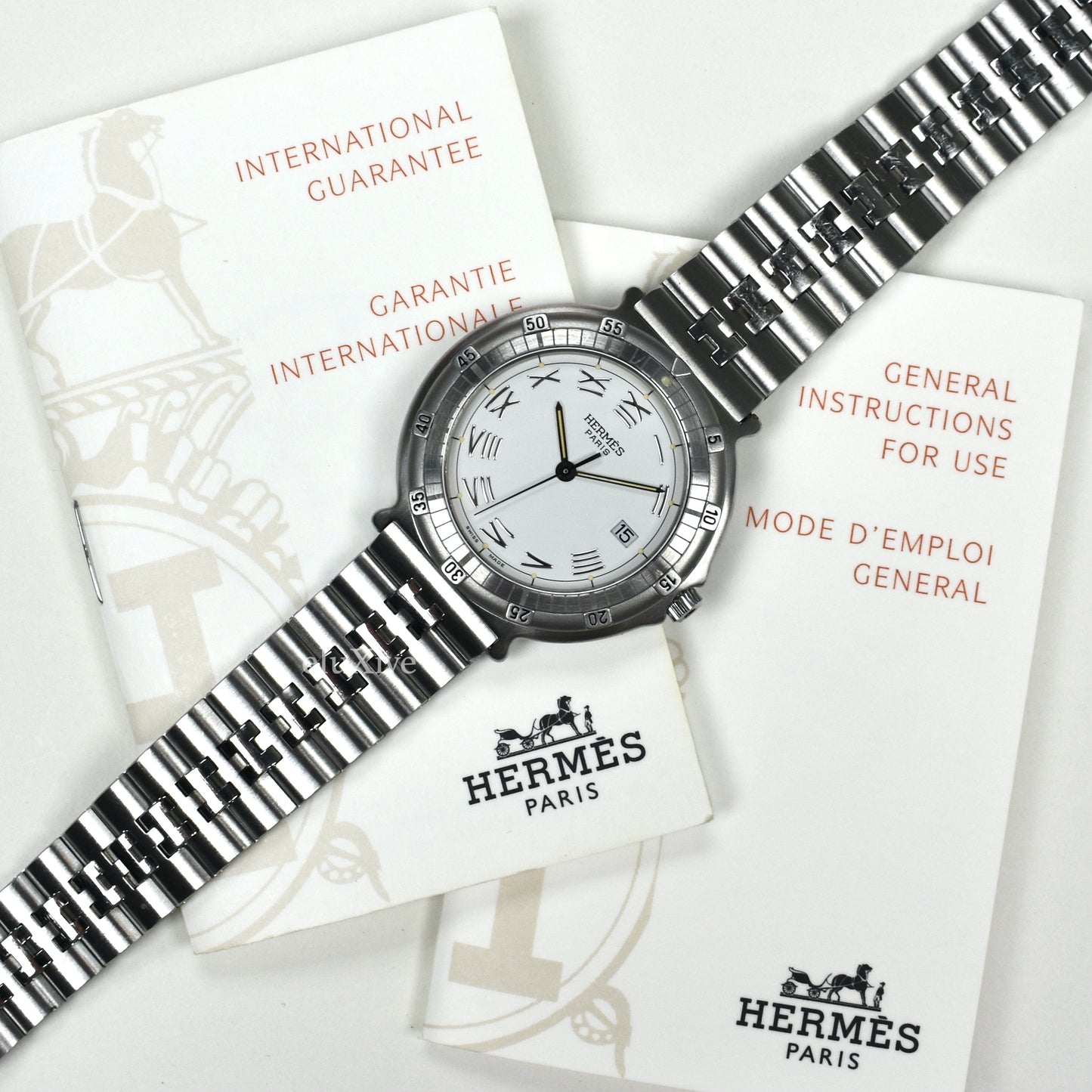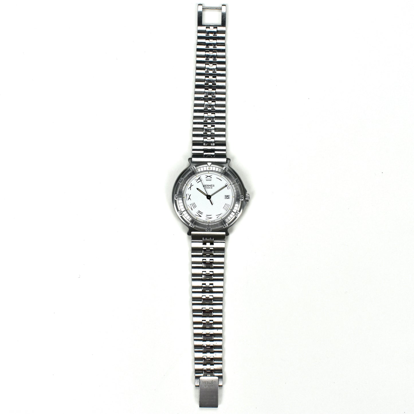 - White HERMES Paris logo dial with date window