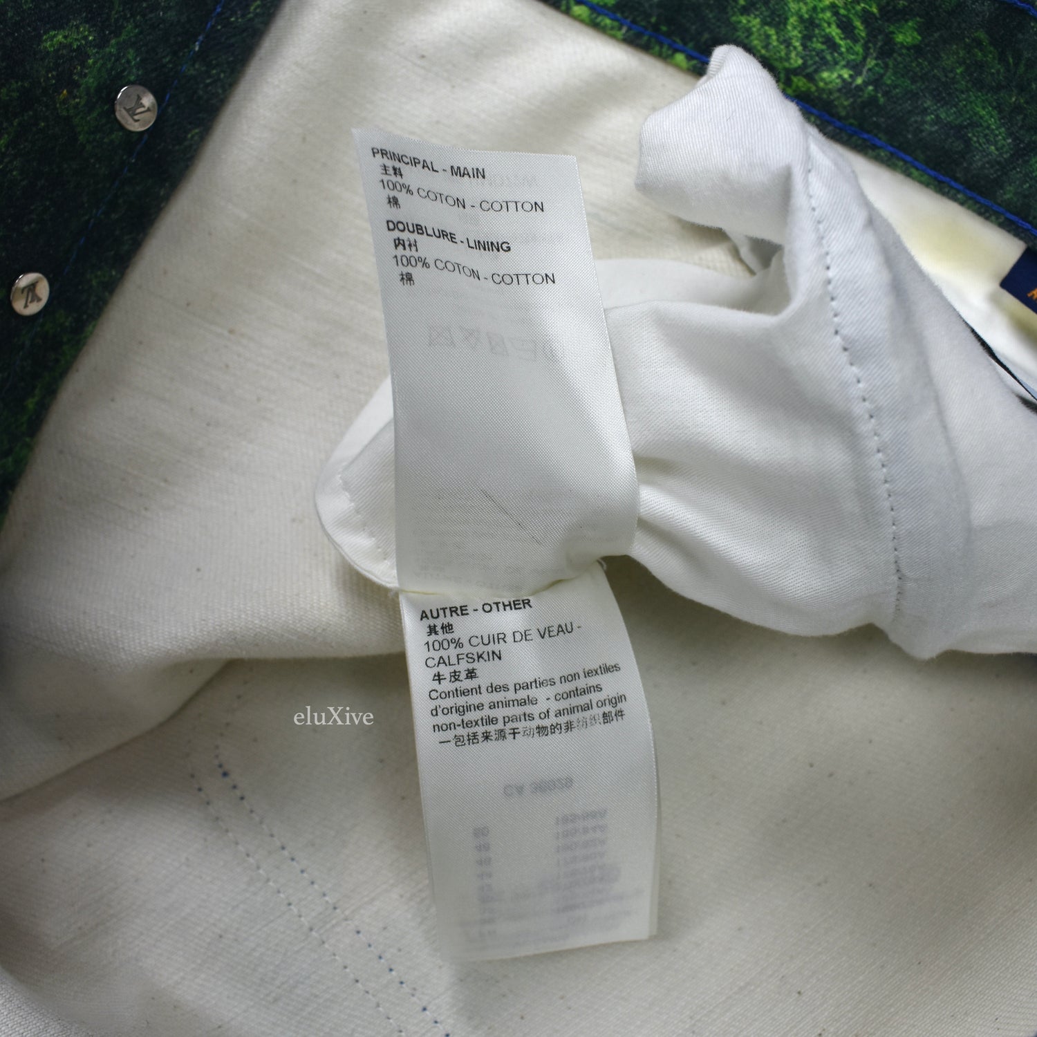 - LV logo embossed suede patch on back