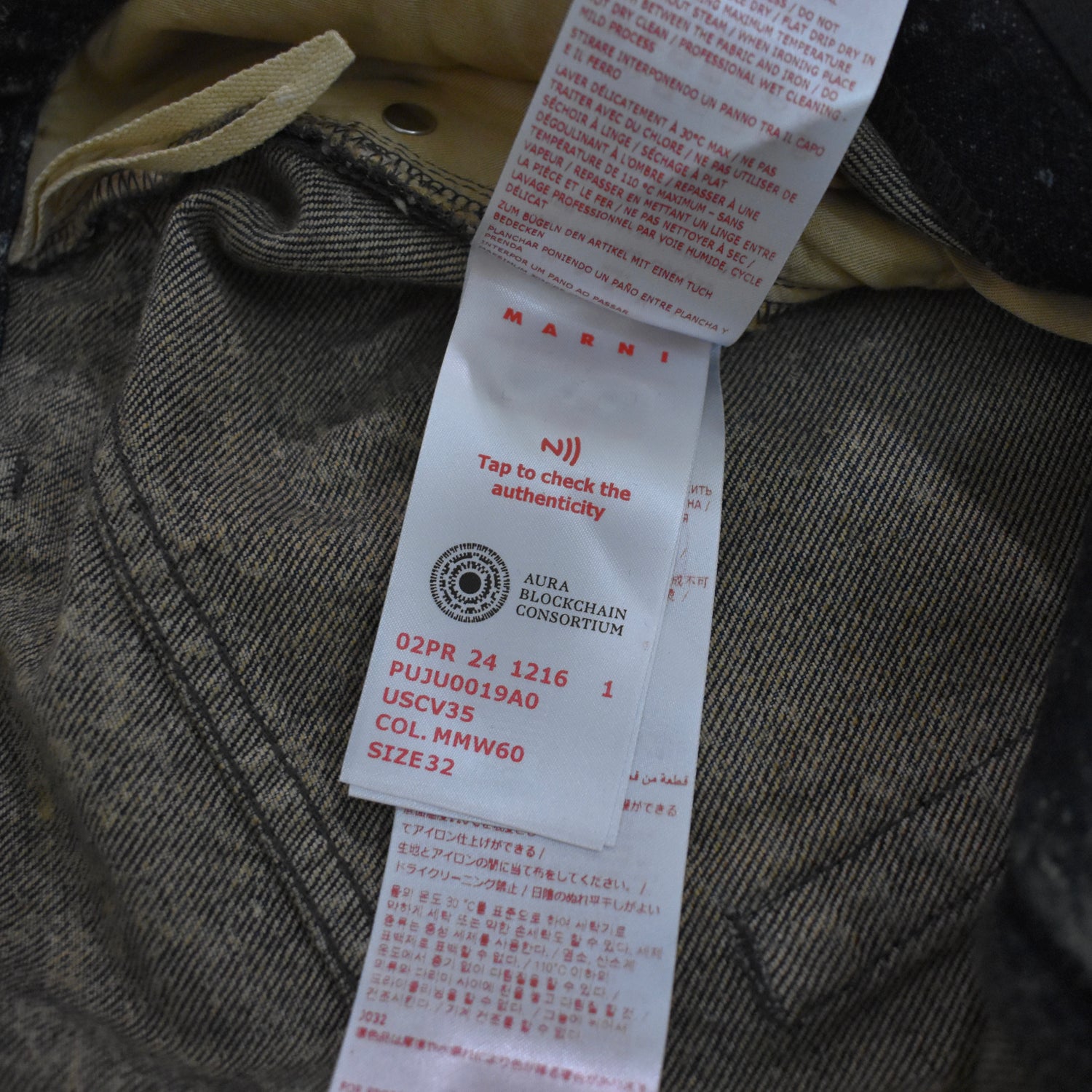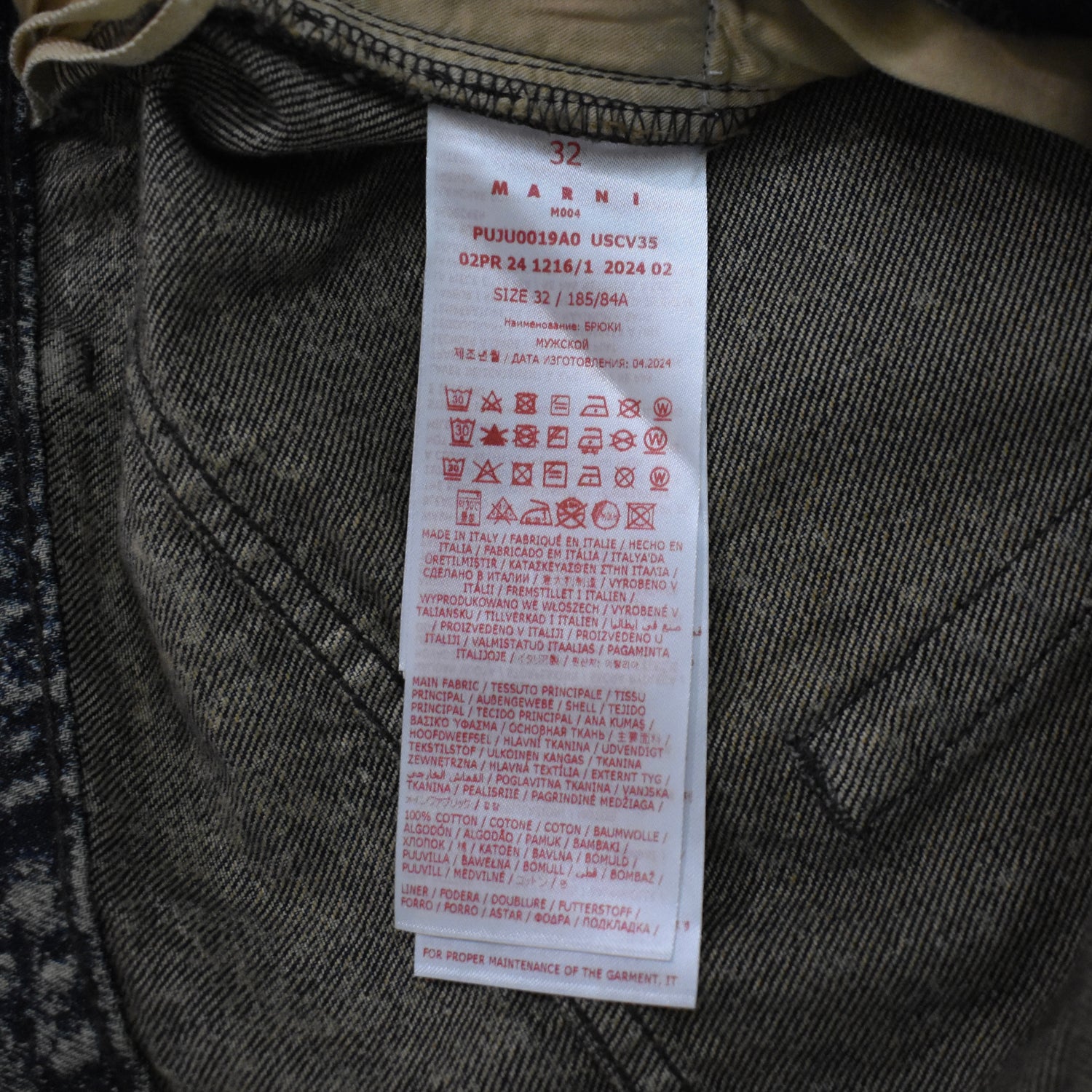- 5-Pocket design, zippered fly, Marni logo engraved metal hardware