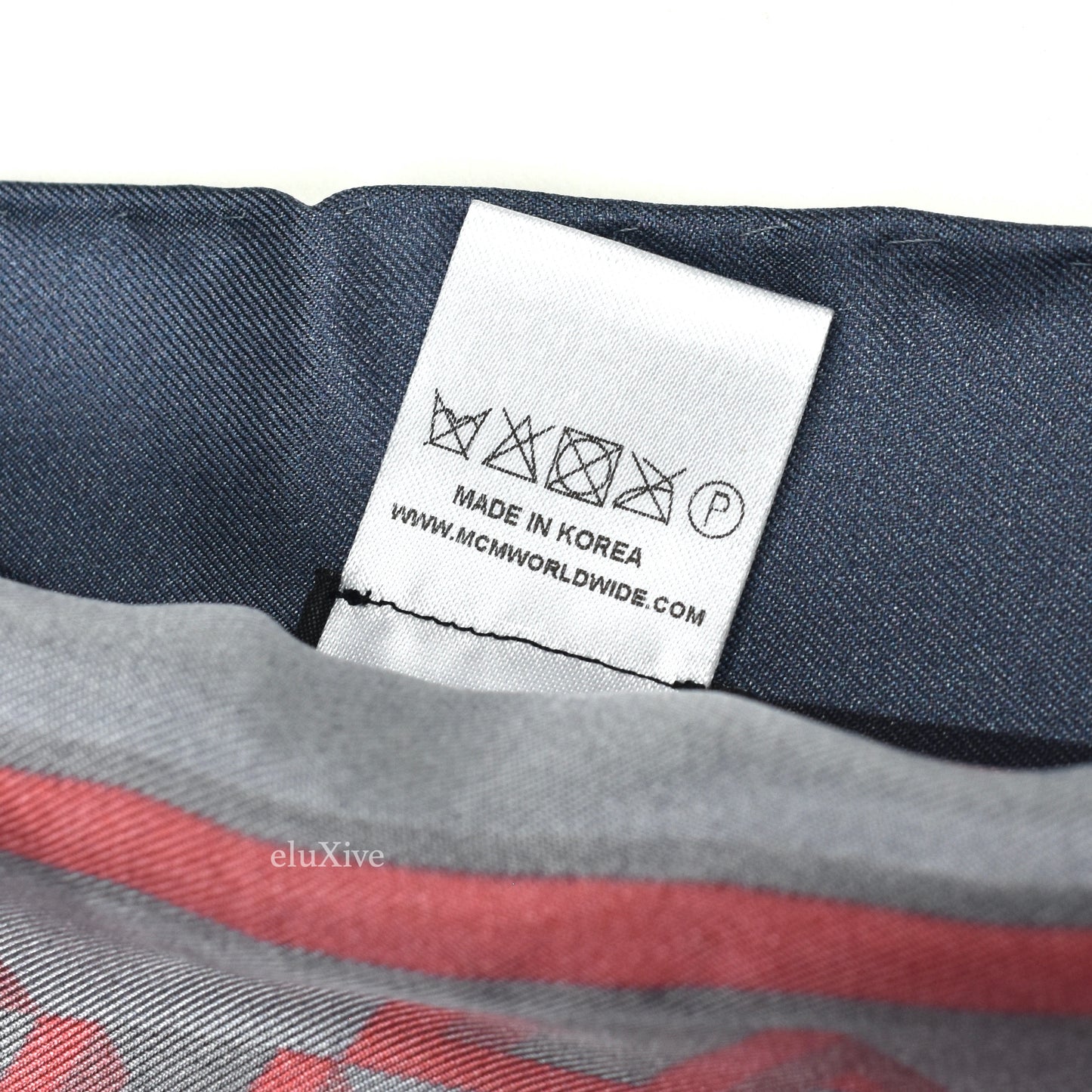 - Allover red, black and slate blue MCM cubic monogram pattern