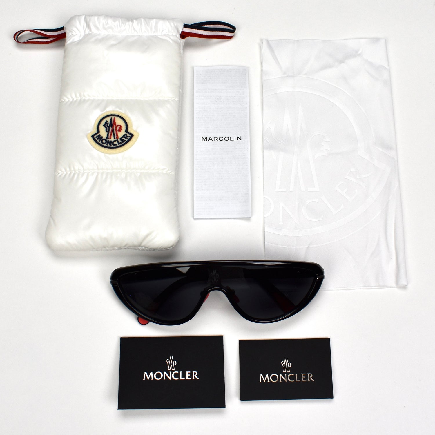 - Black rubberized arms with raised Moncler logos