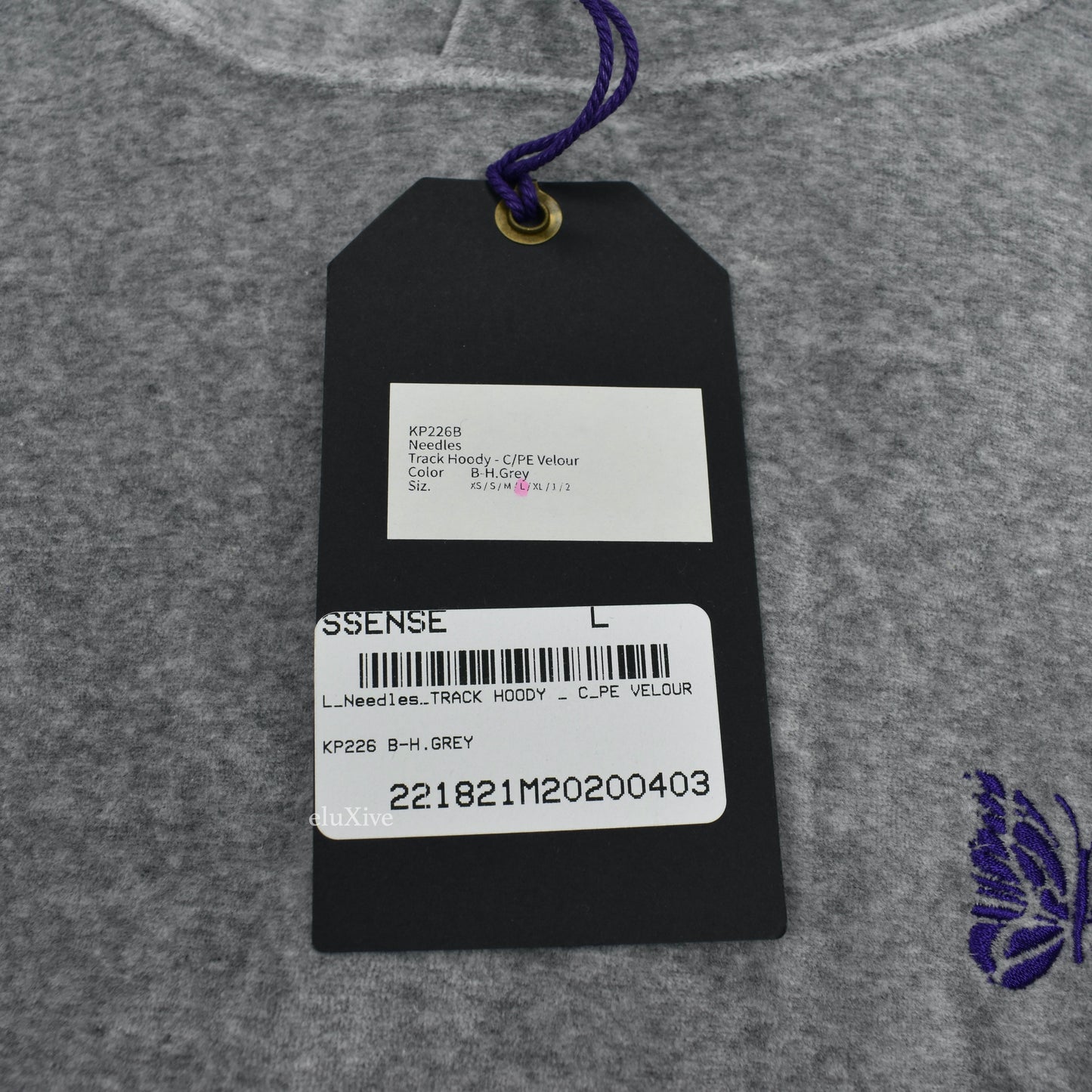 Needles - Gray/Purple Butterfly Logo Velour Hoodie