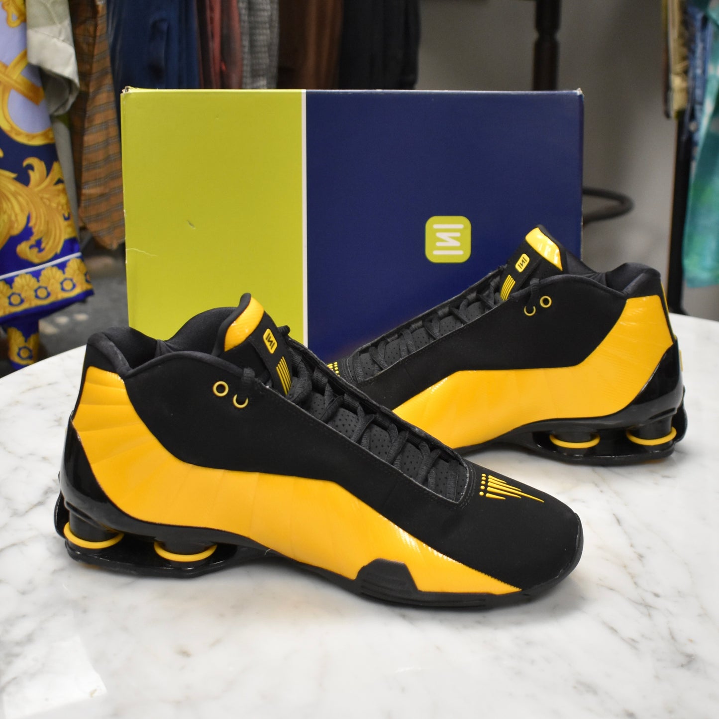 - Black synthetic suede and university gold (yellow) carbon fiber texture upper