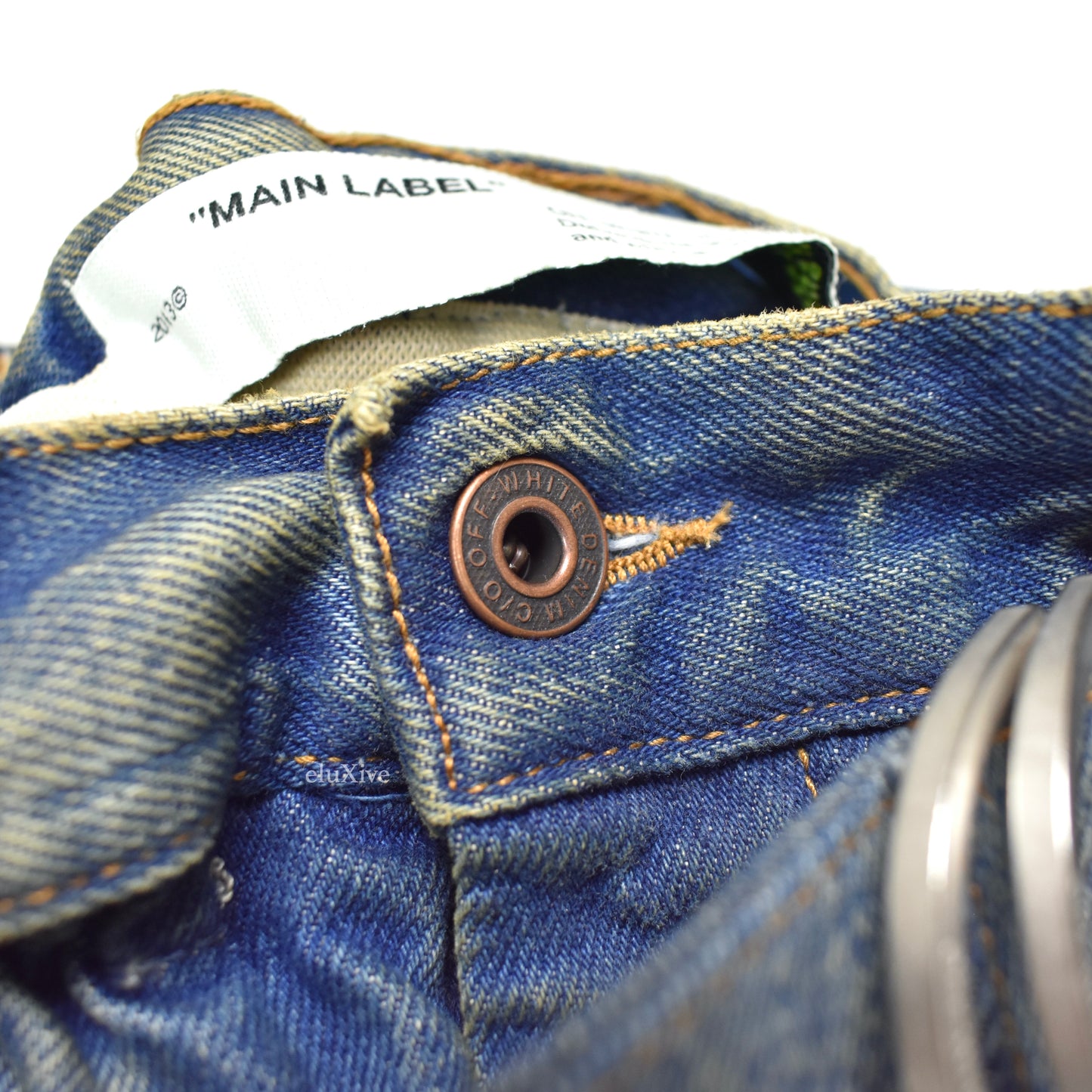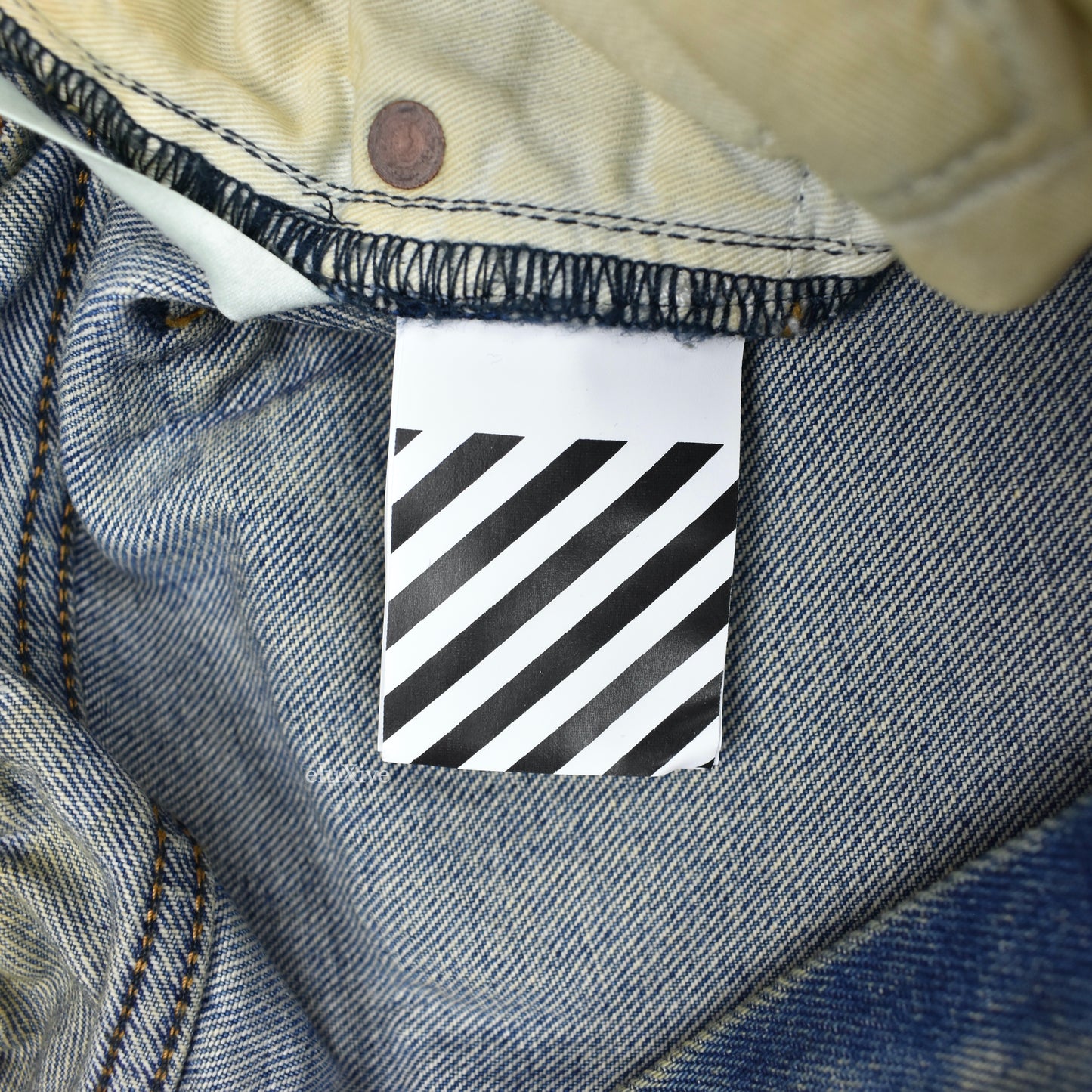 - Off-White logo metal hardware, light green "DENIM LABEL" on back