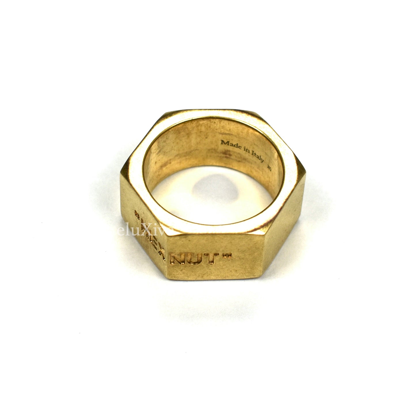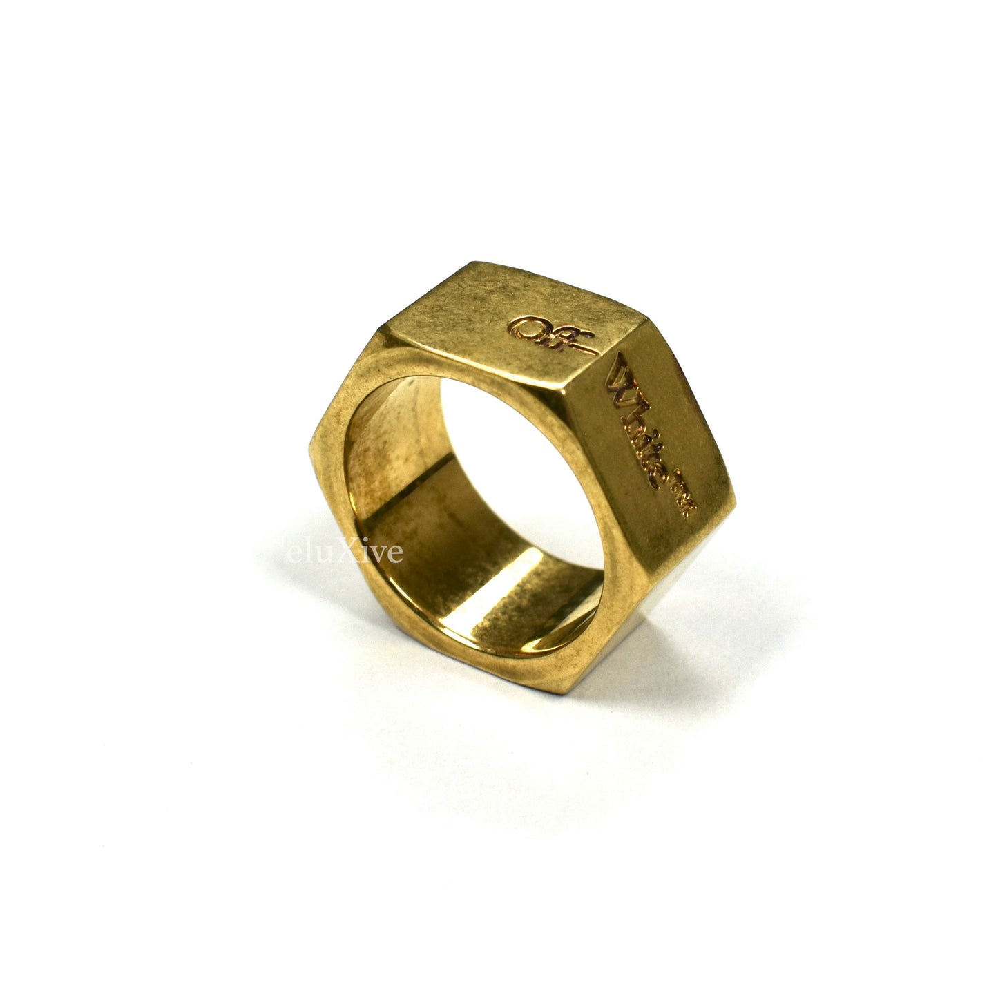 Off-White - Matte Gold Logo Engraved Hex Nut Ring
