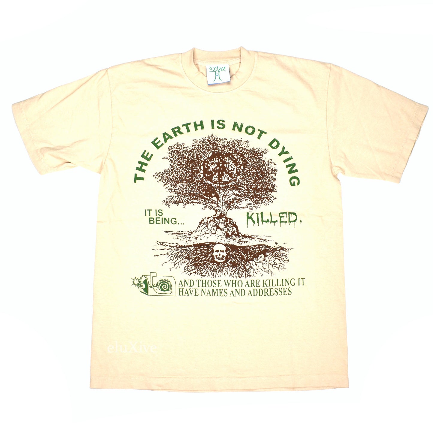 - The Earth Is Not Dying It's Being Killed tree graphic on front