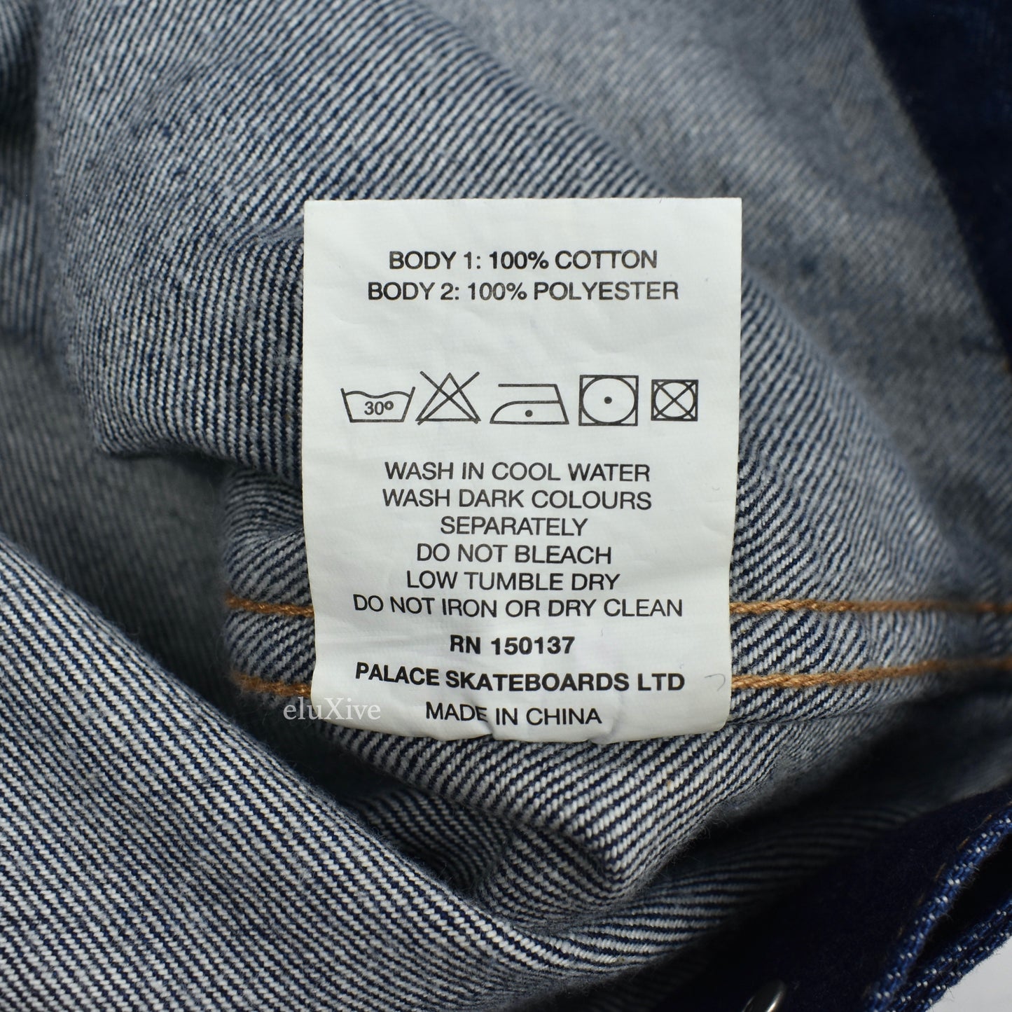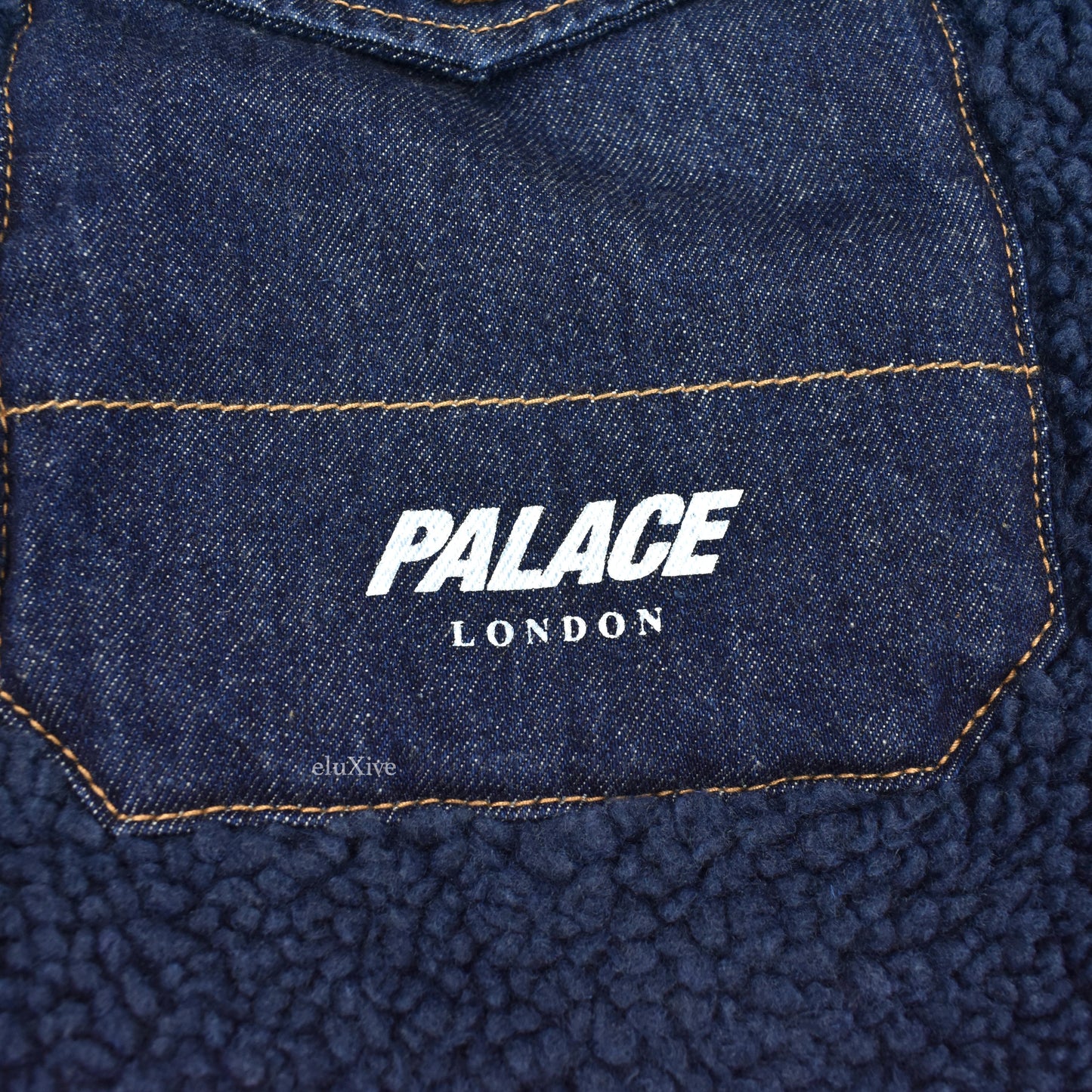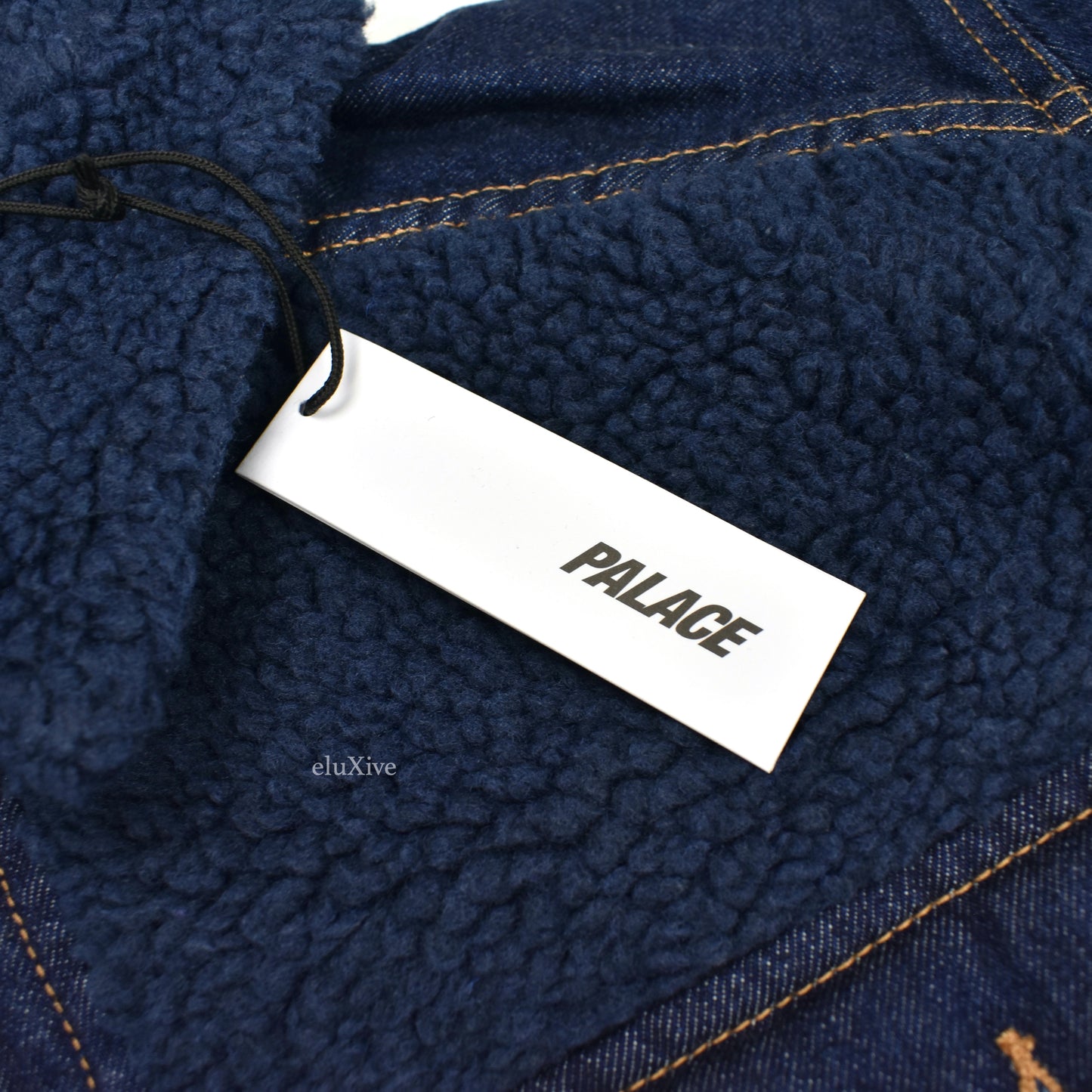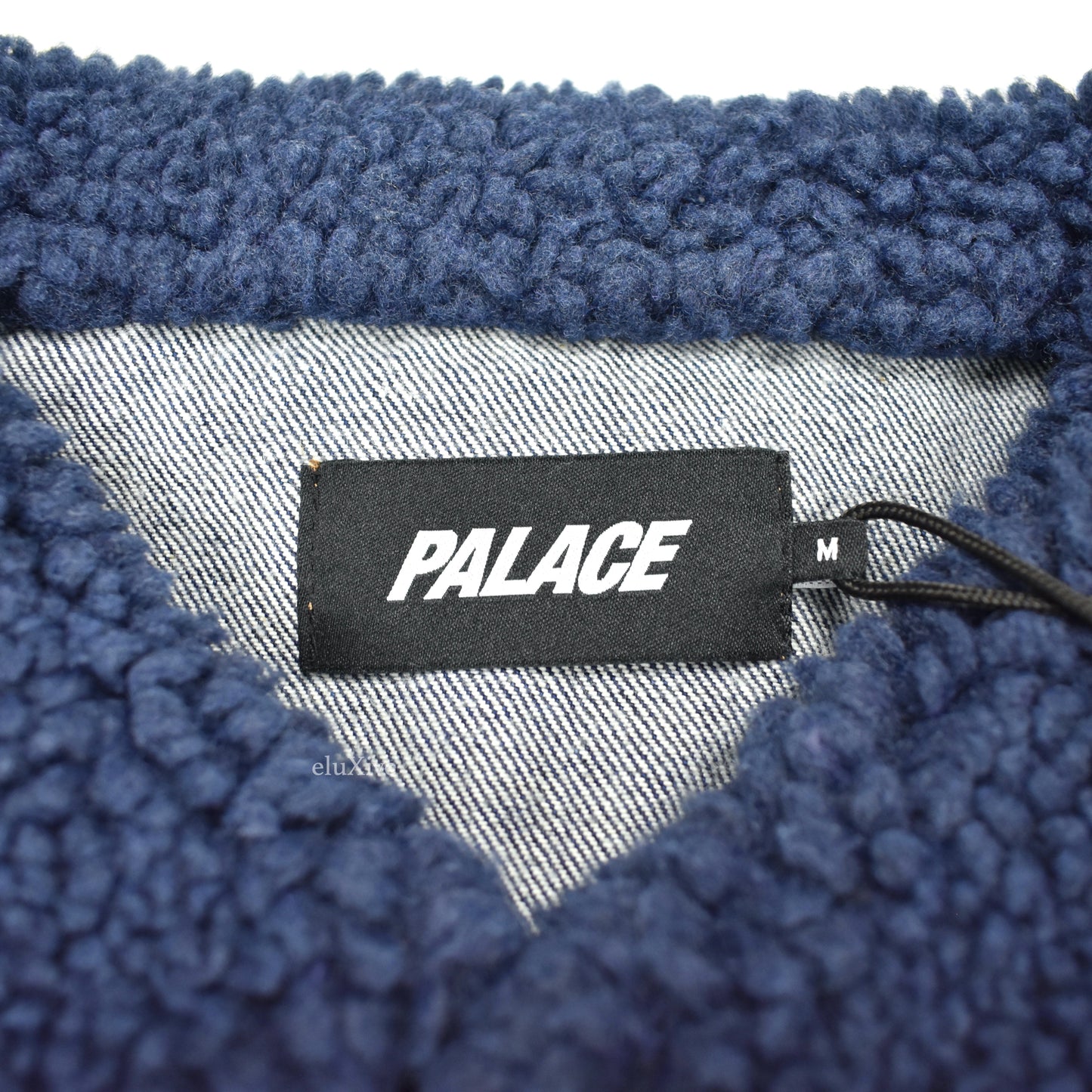 Palace - Navy Grizzly Fleece Denim Trucker Jacket