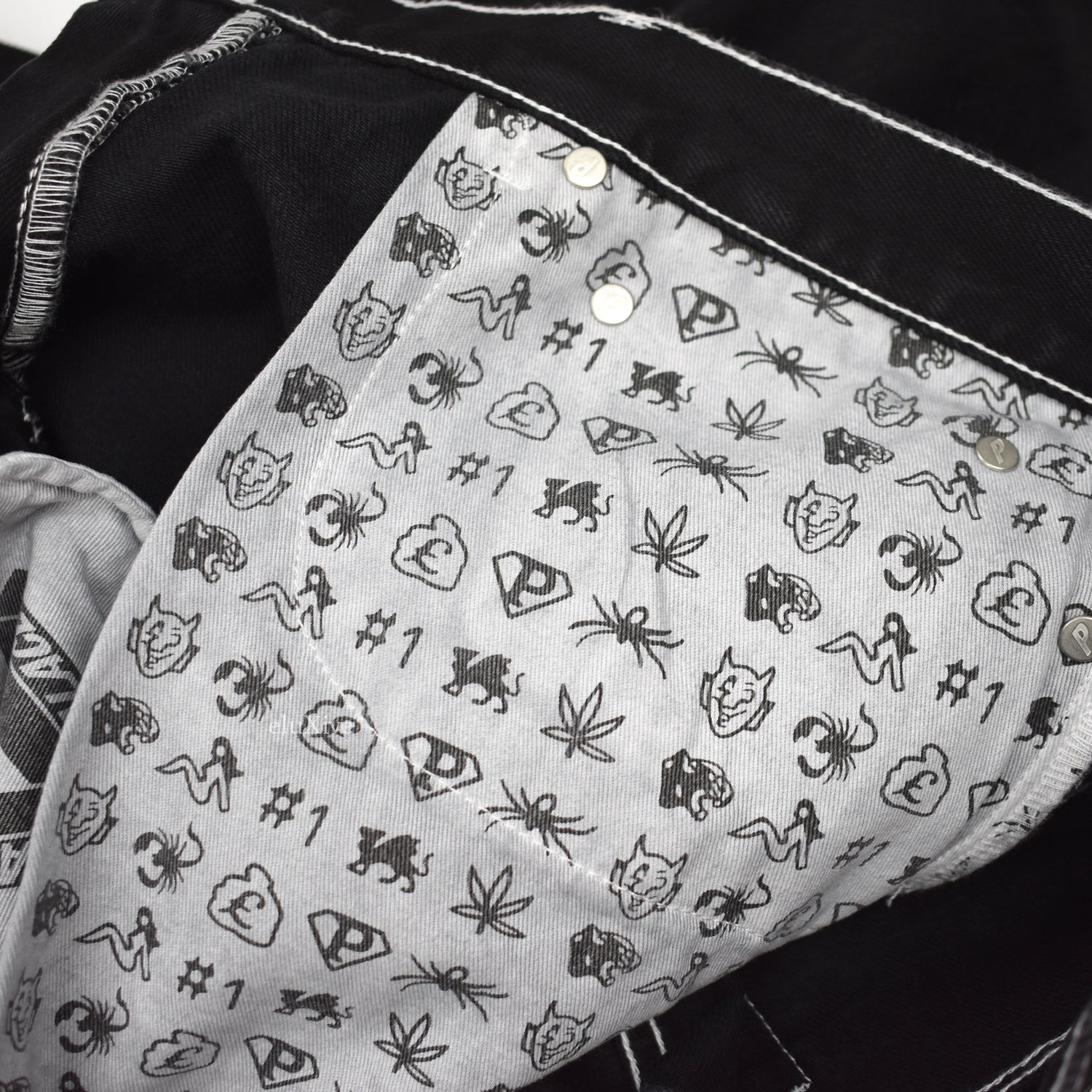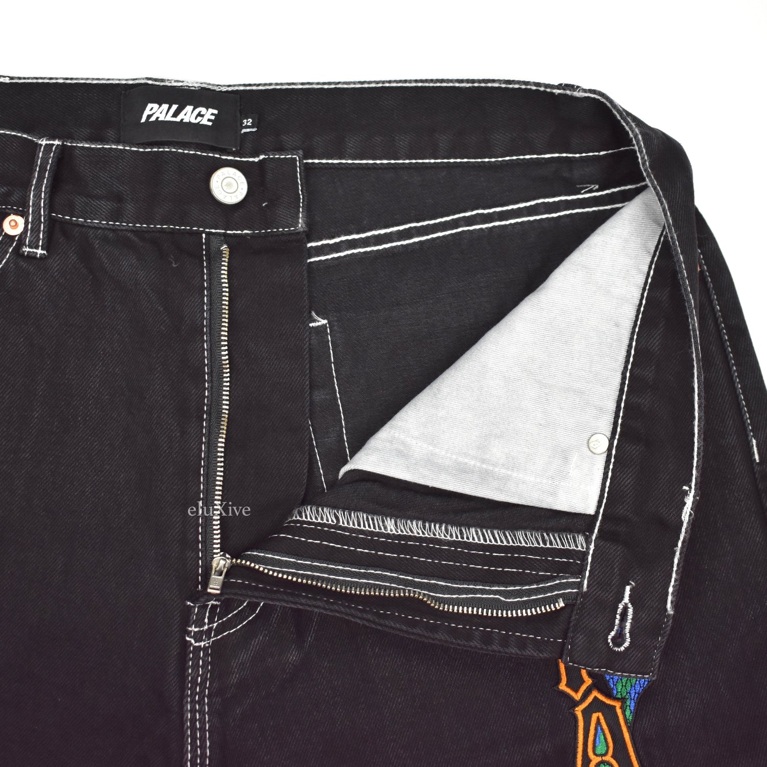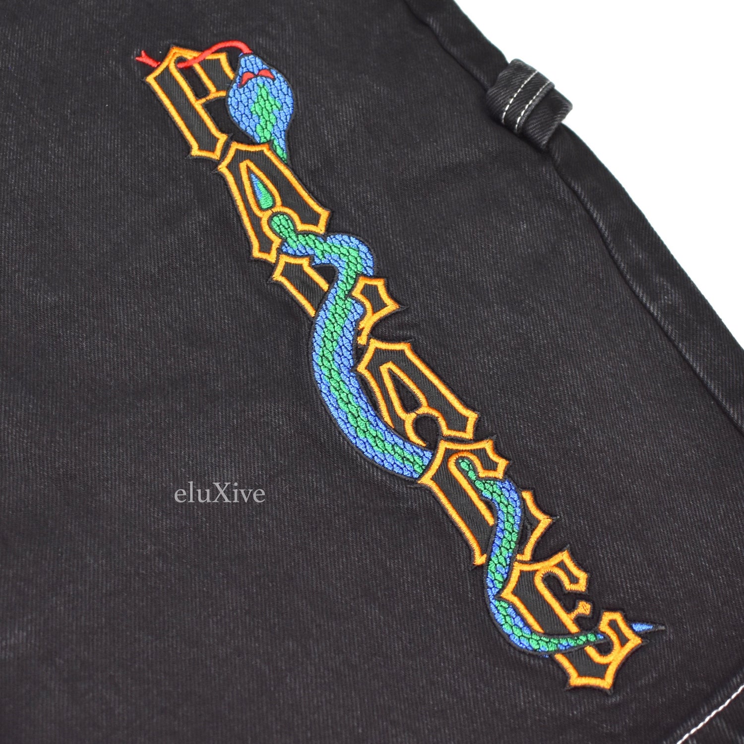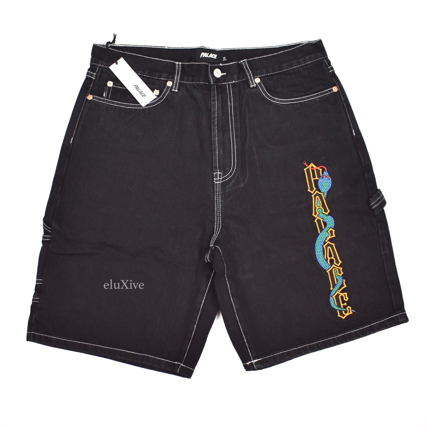 Palace - Snake Logo Embroidered 'Sphesh' Denim Shorts (Black)