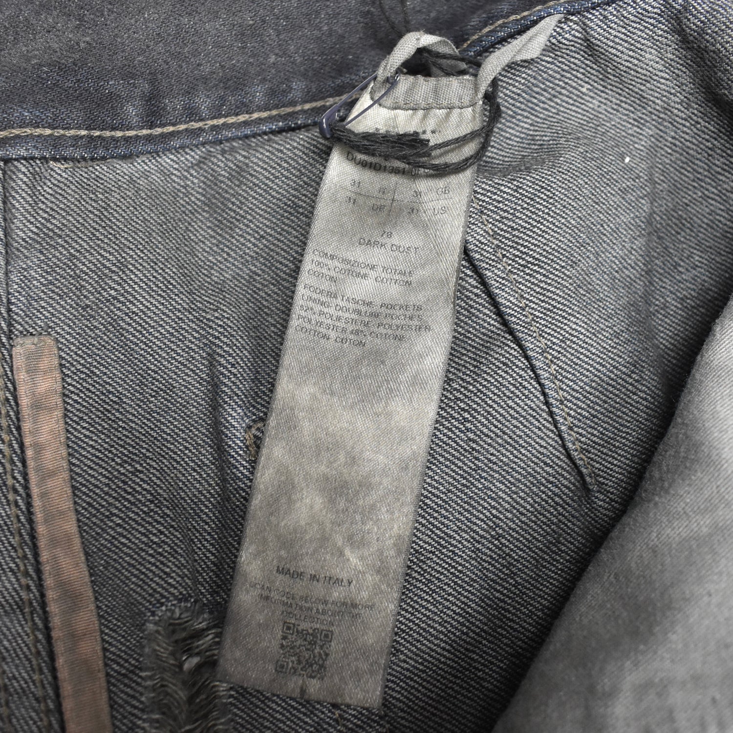 - Made of 'dark dust' selvedge denim with a distressed / dirty effect