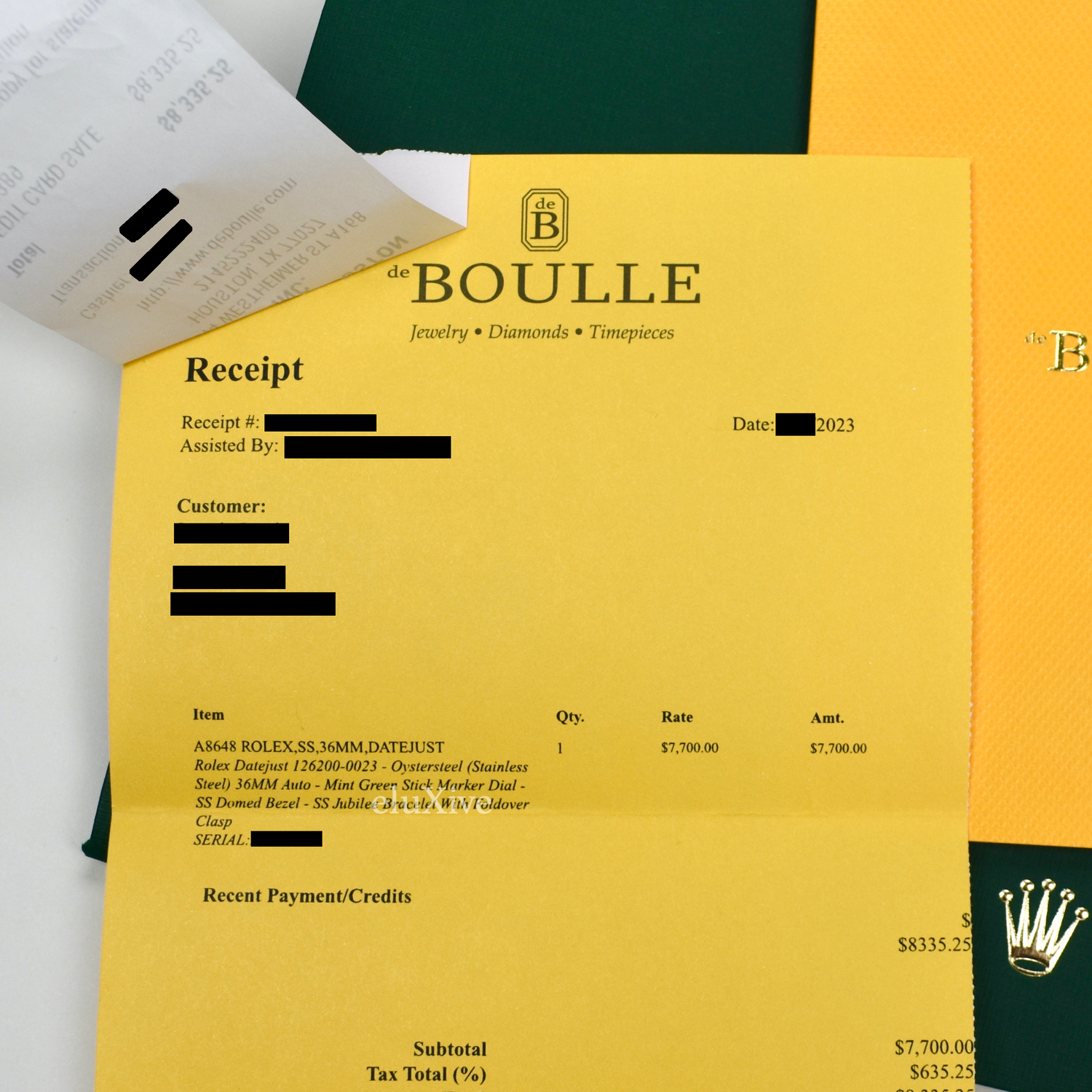 Rolex - Datejust 36 Mint Green Dial Watch, B&P (126200)