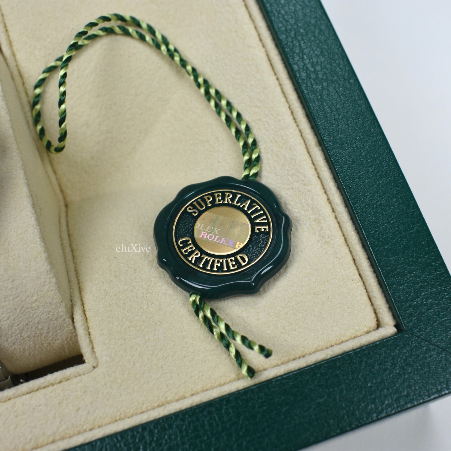 - Includes full set - original inner box, outer box, storage case, tags, bezel ring, booklets, warranty card, card holder, Rolex store bag and receipt.