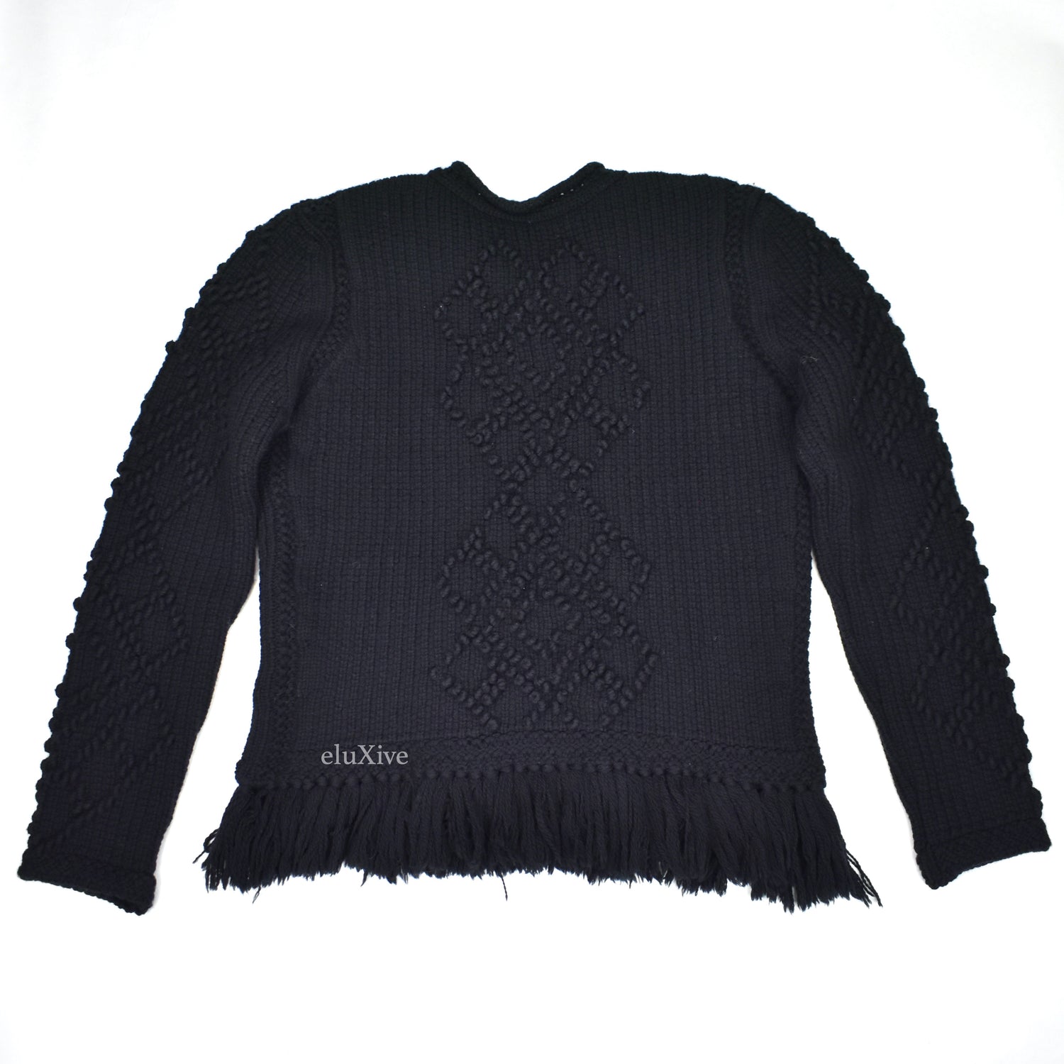 Saint Laurent - Black Heavy Knit Wool Fringed Sweater