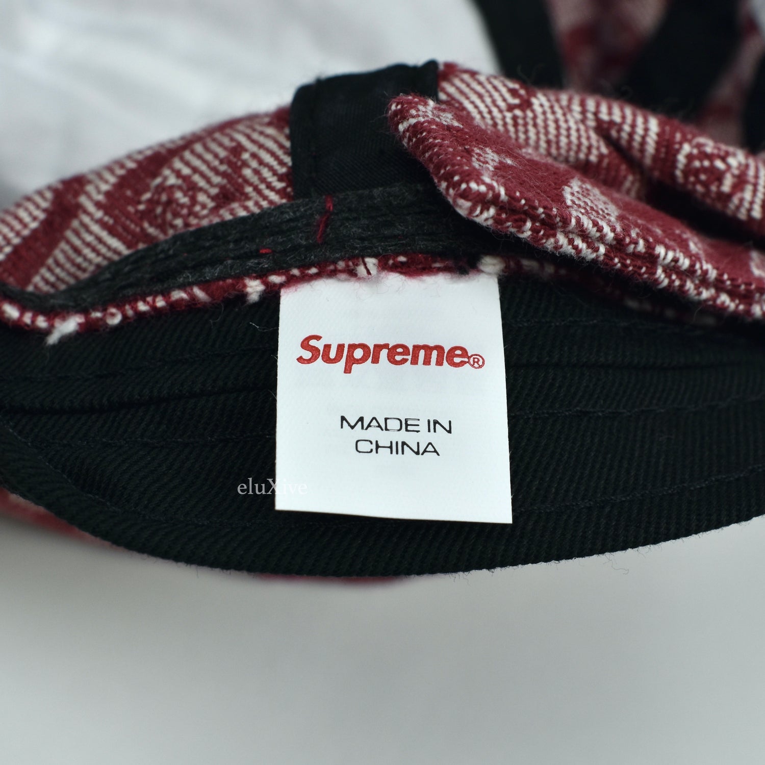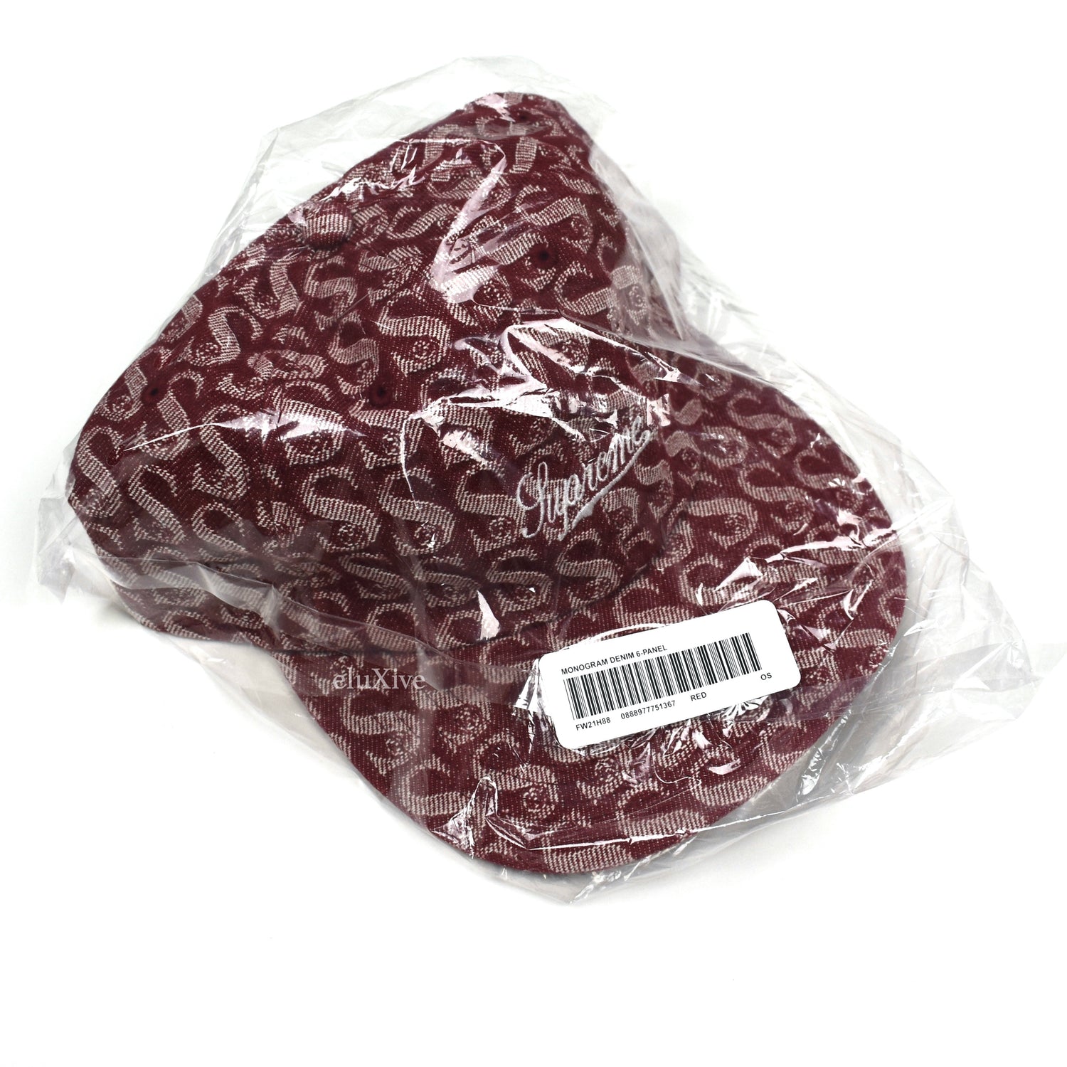 - Red denim fabric with allover jacquard Supreme monogram logo