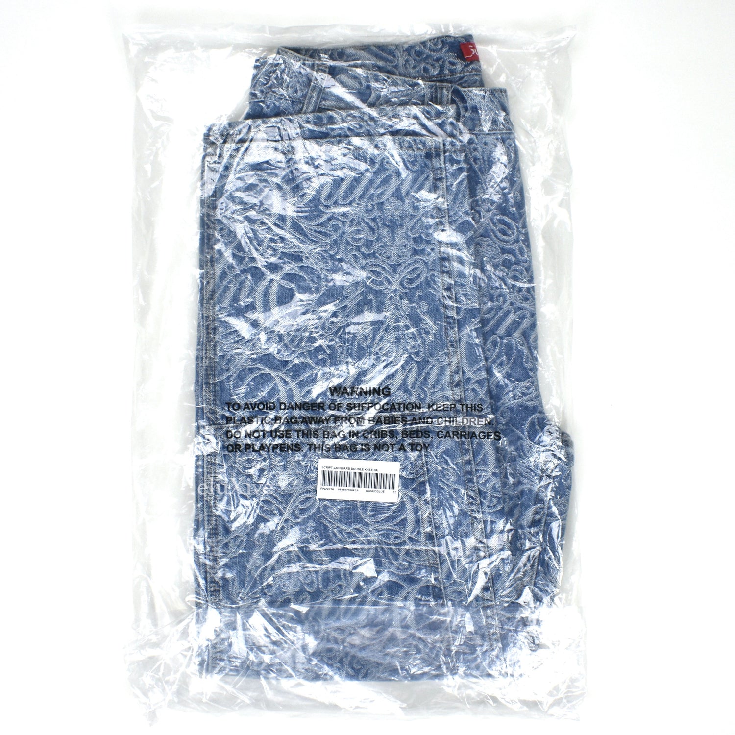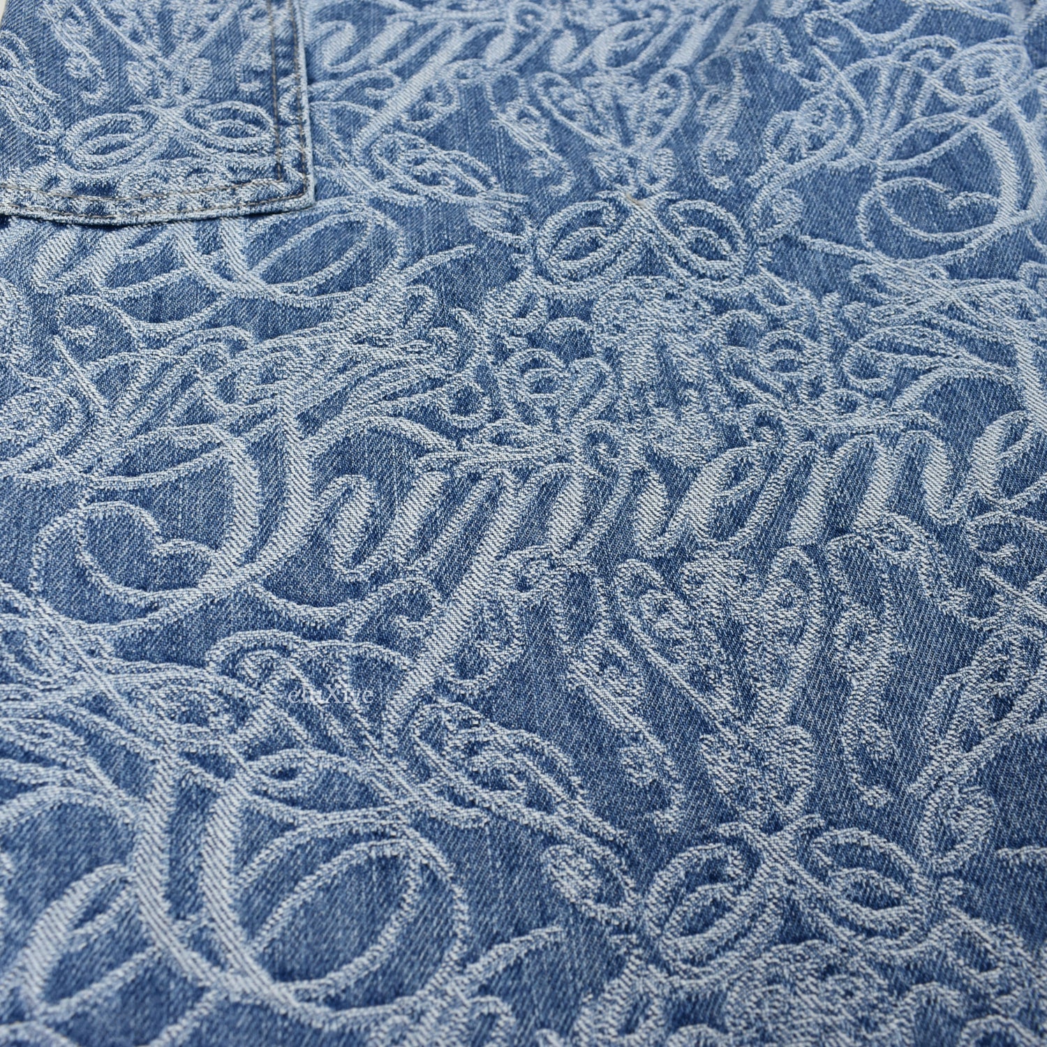 - Thick 100% cotton denim with jacquard woven Superme script logos