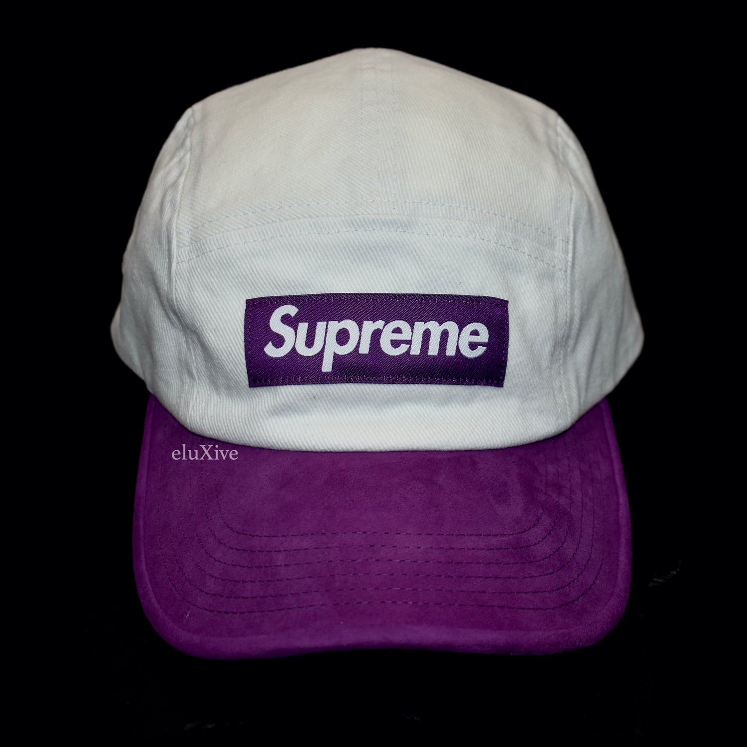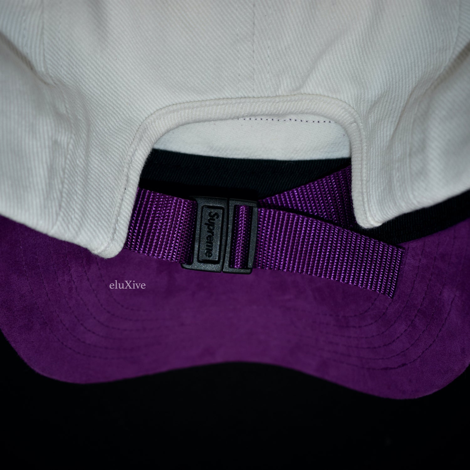 Supreme - White/Purple Box Logo Suede Bill Hat