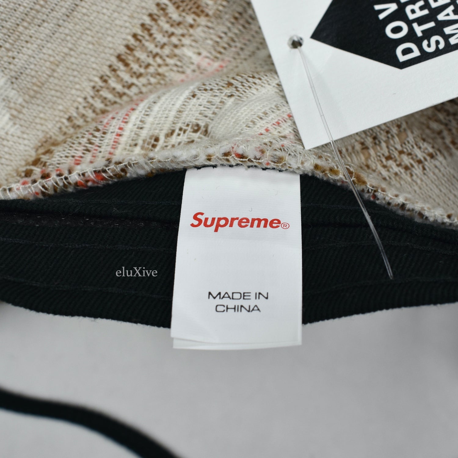 - Brown Supreme military box logo label on front
