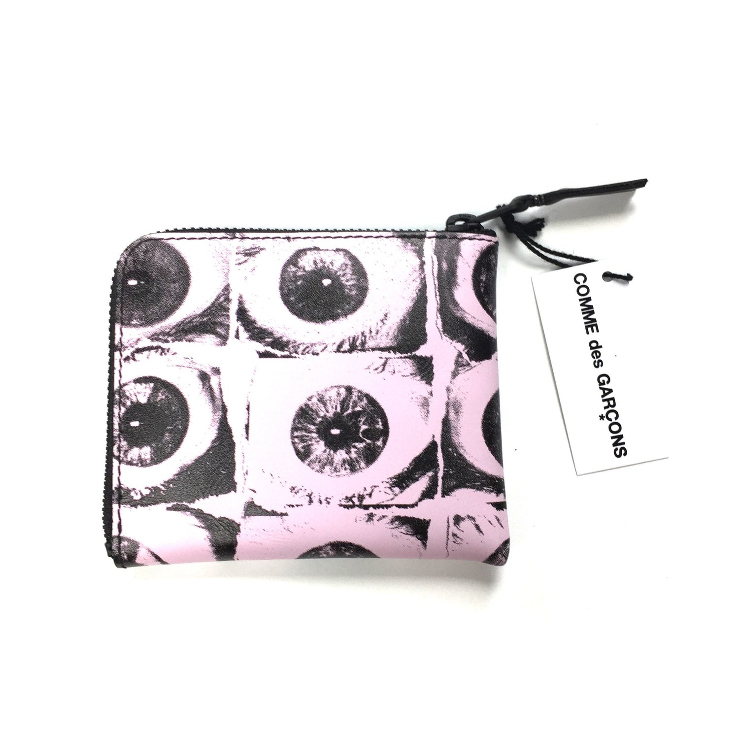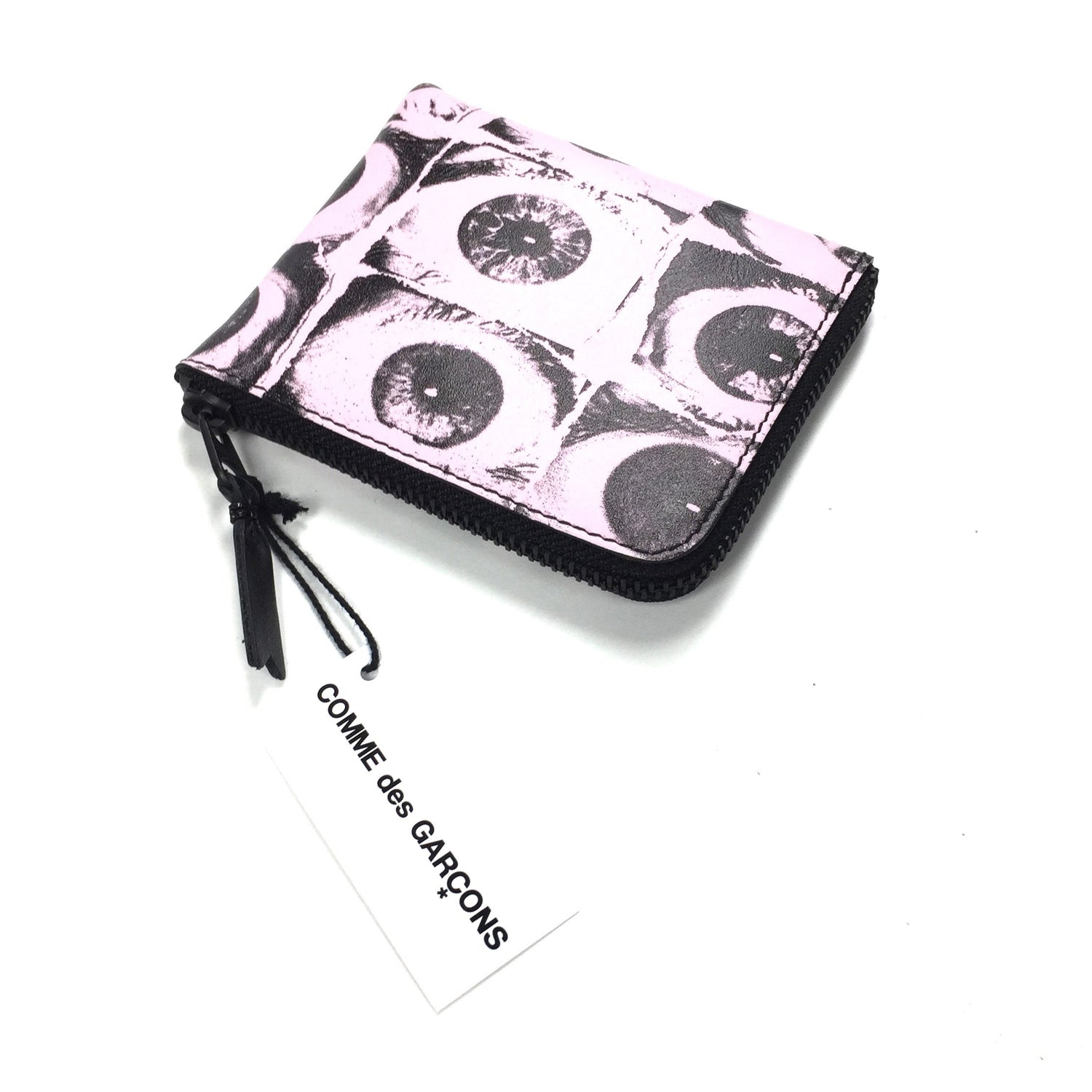 - Made of pink genuine leather with allover eye print