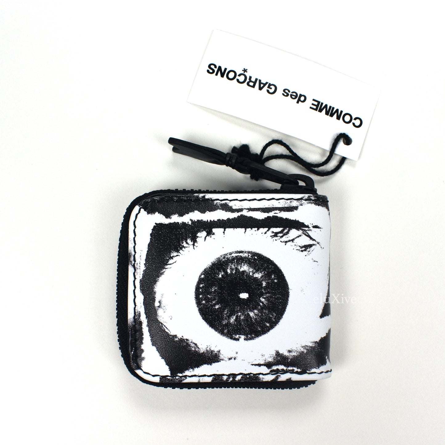 - Made of white genuine leather with allover eye print