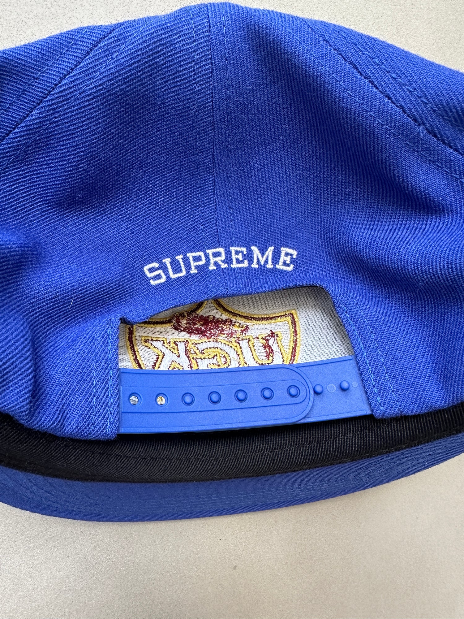 - Supreme block letter logo embroidered on back