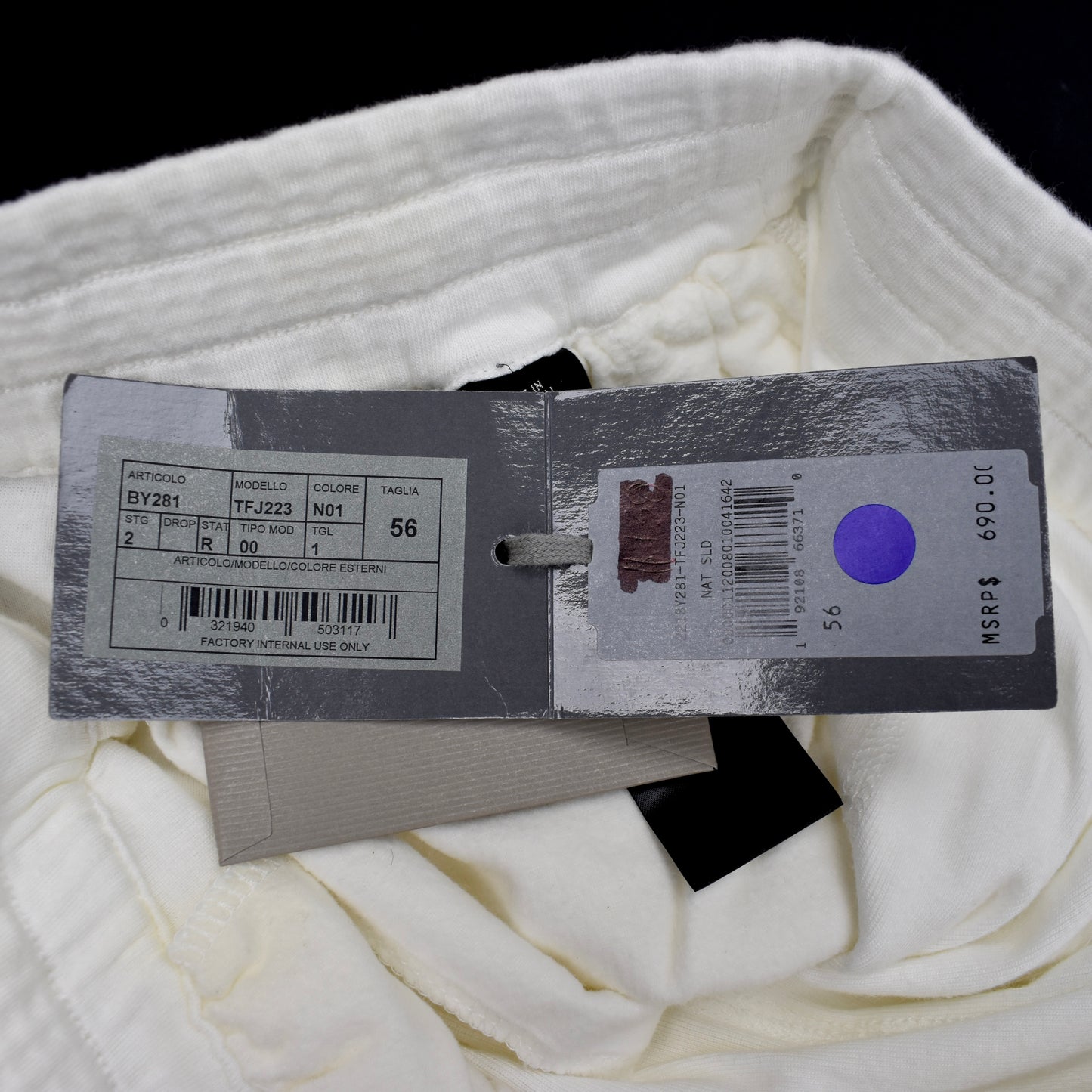 - Original tags still attached