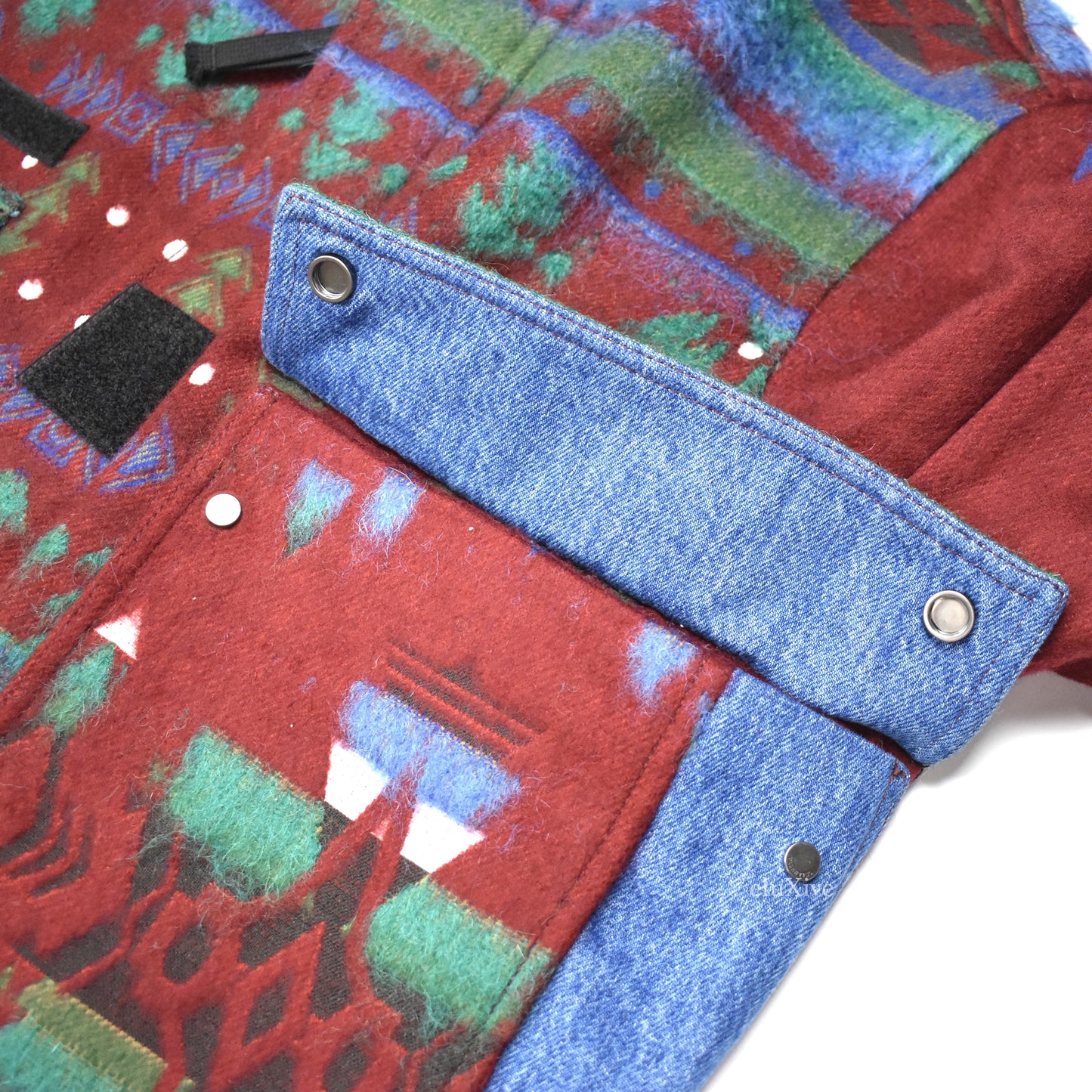 - Corduroy collar, denim trim