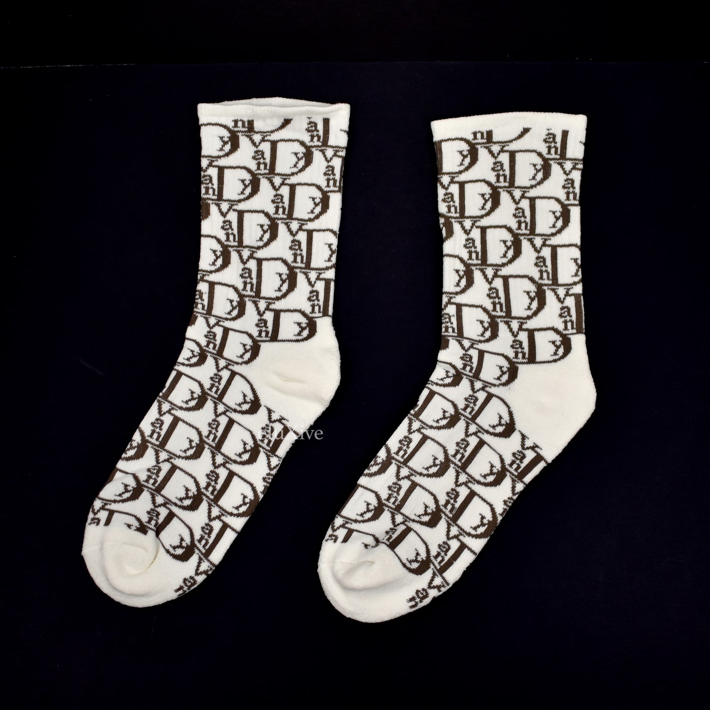Vandy The Pink - Vior Monogram Knit Socks (White/Brown)