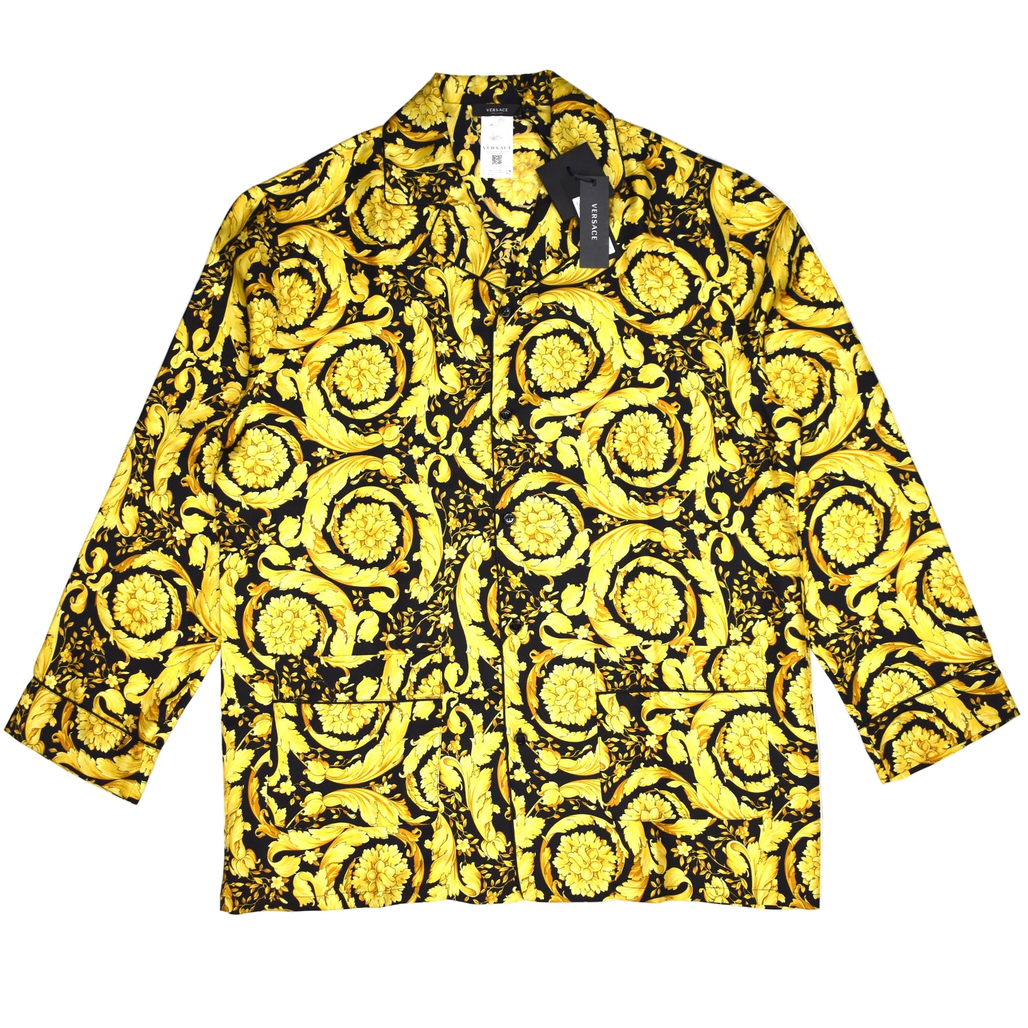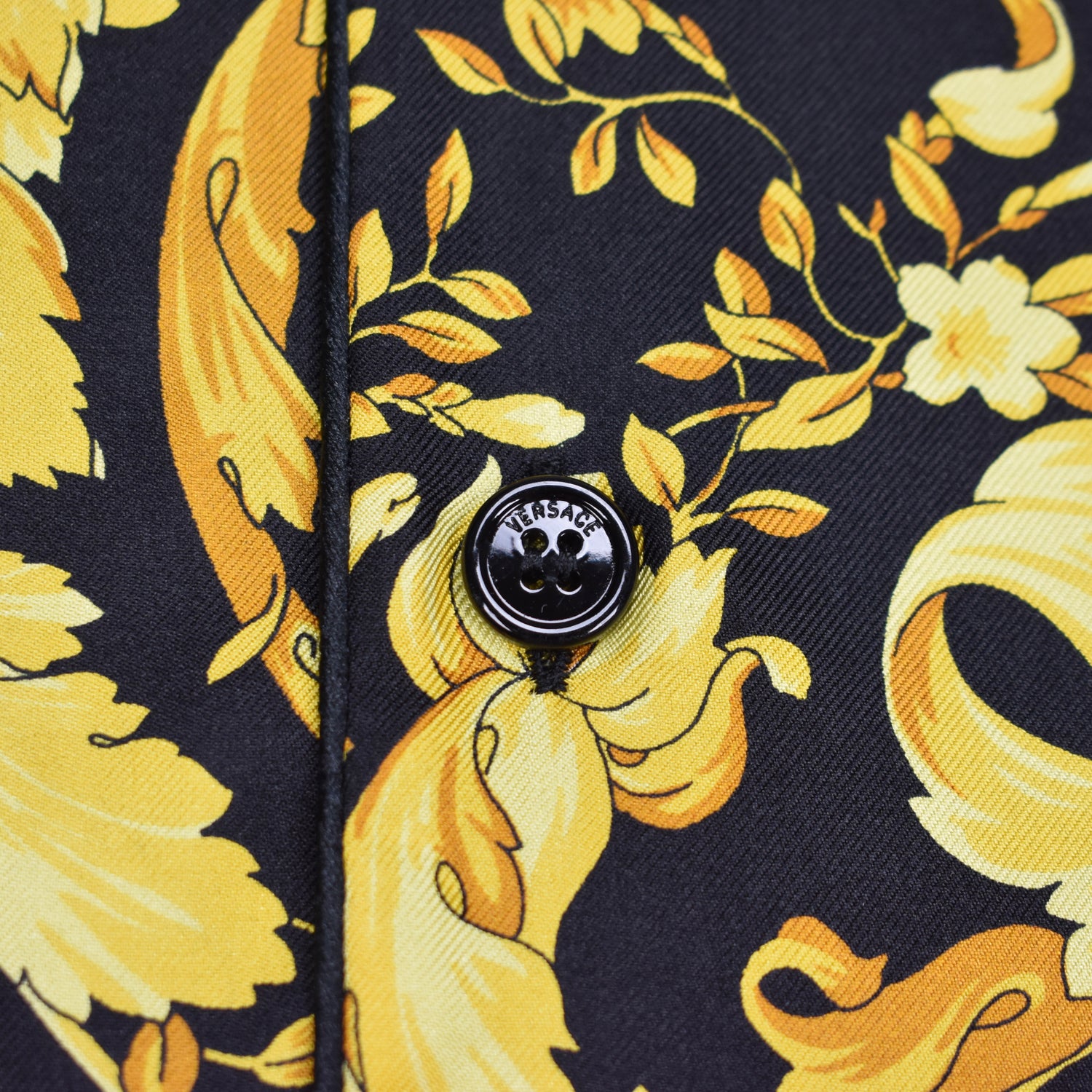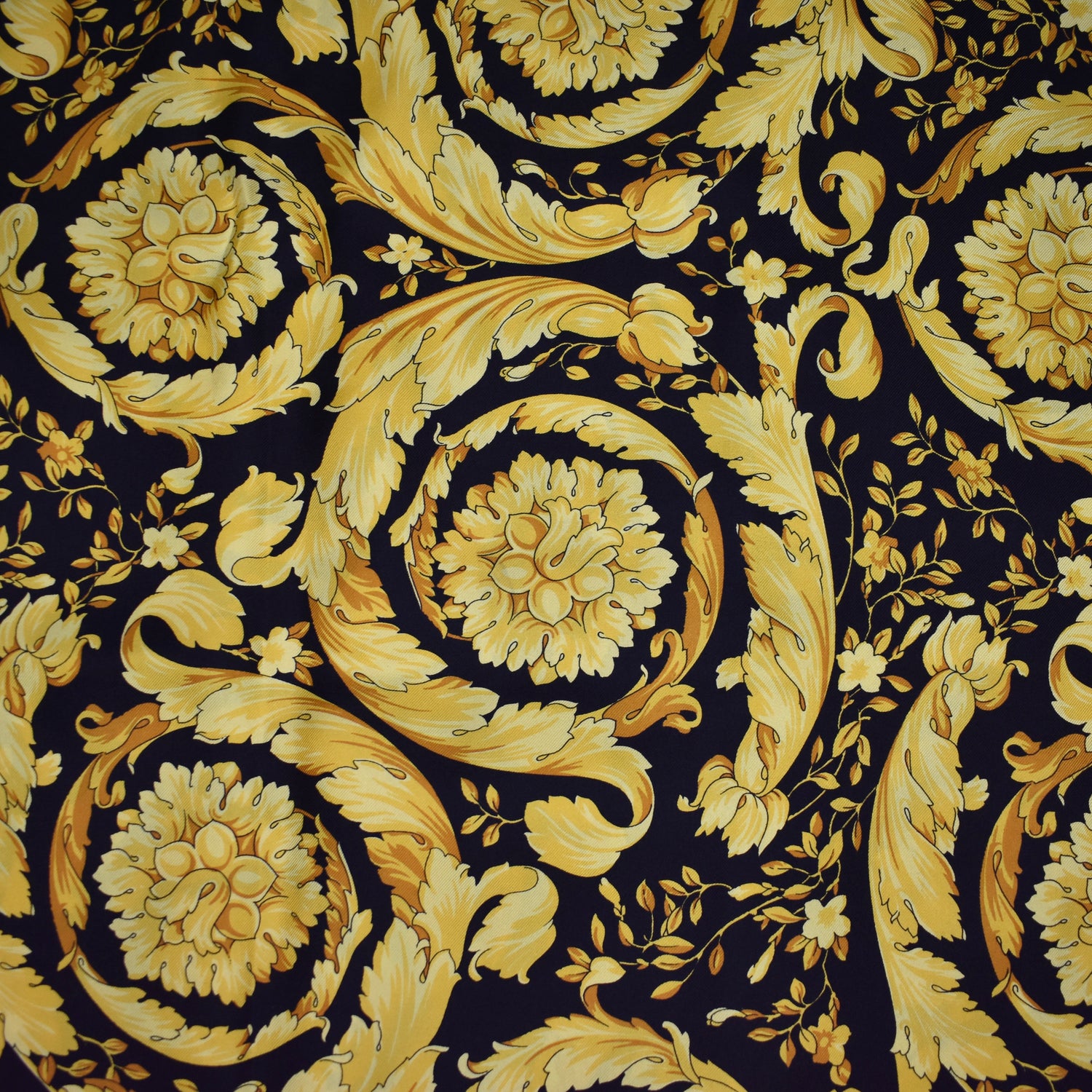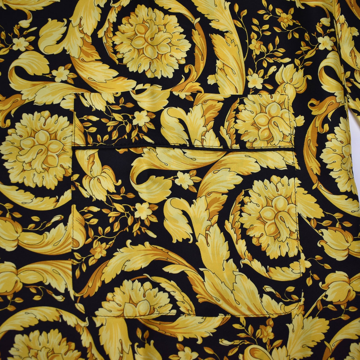 - Allover black and gold iconic Versace Barocco print