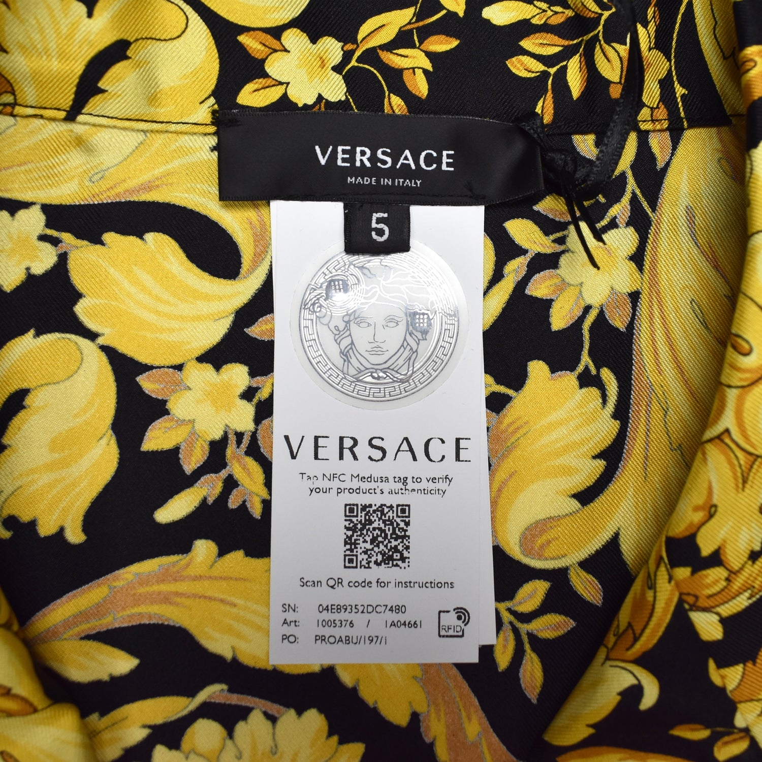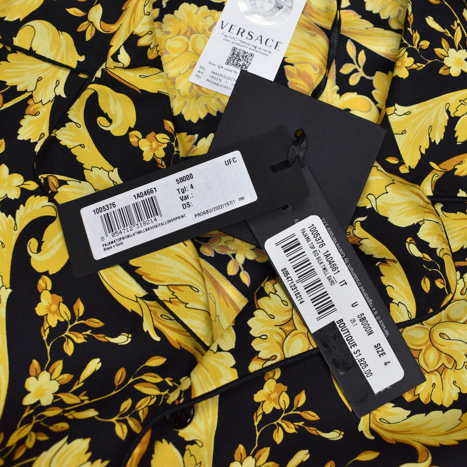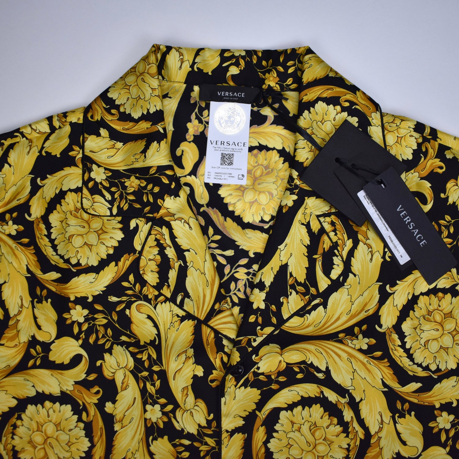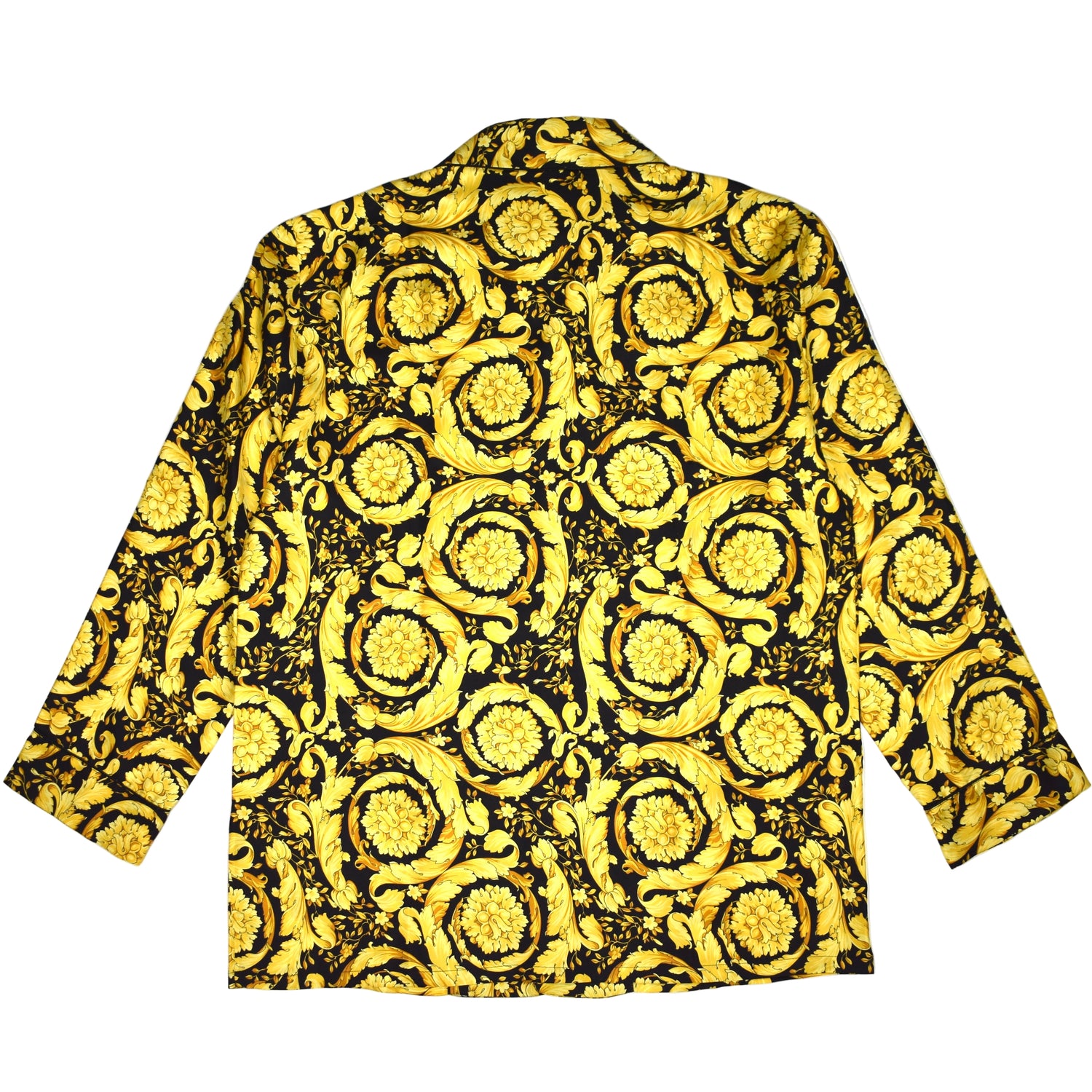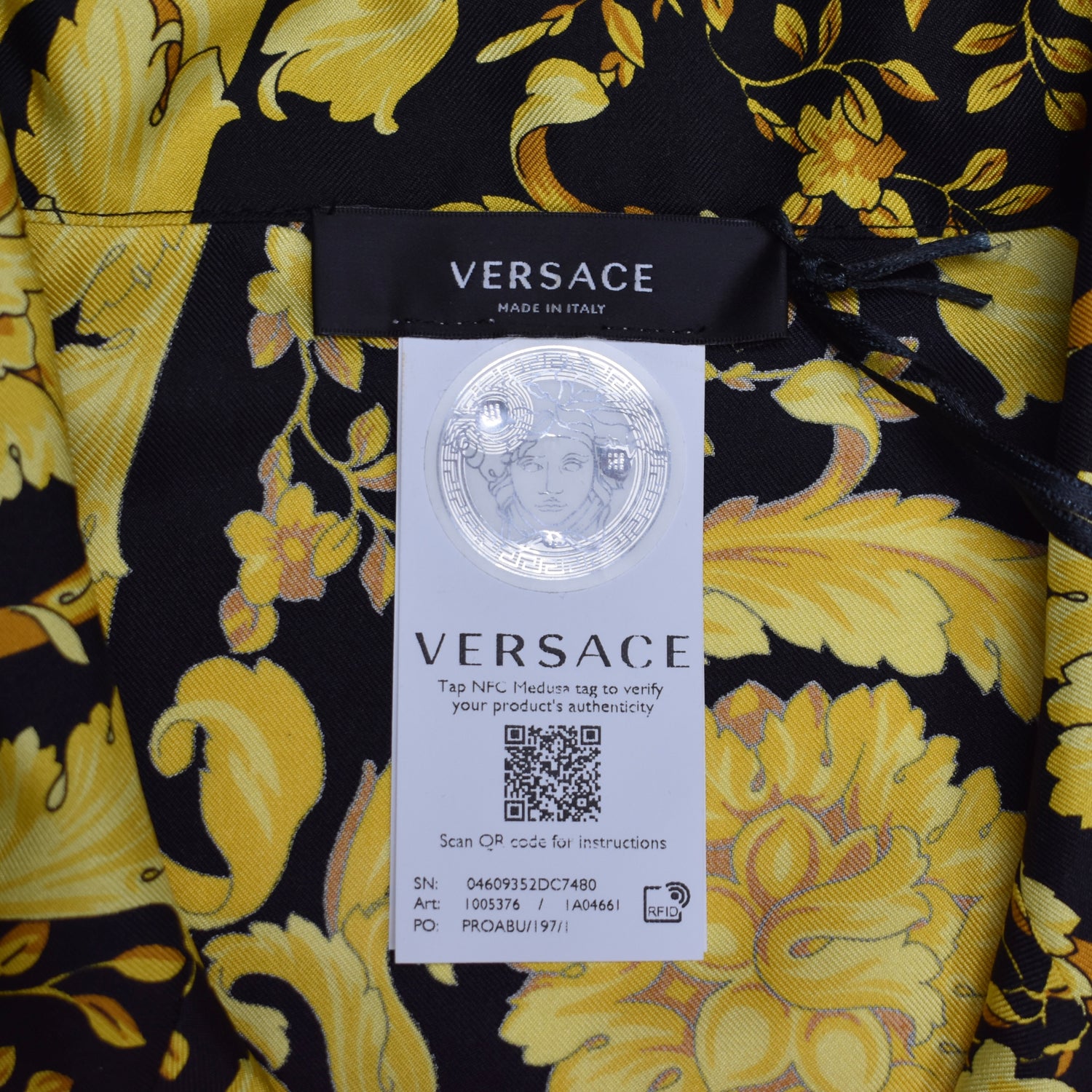 - Allover black and gold iconic Versace Barocco print