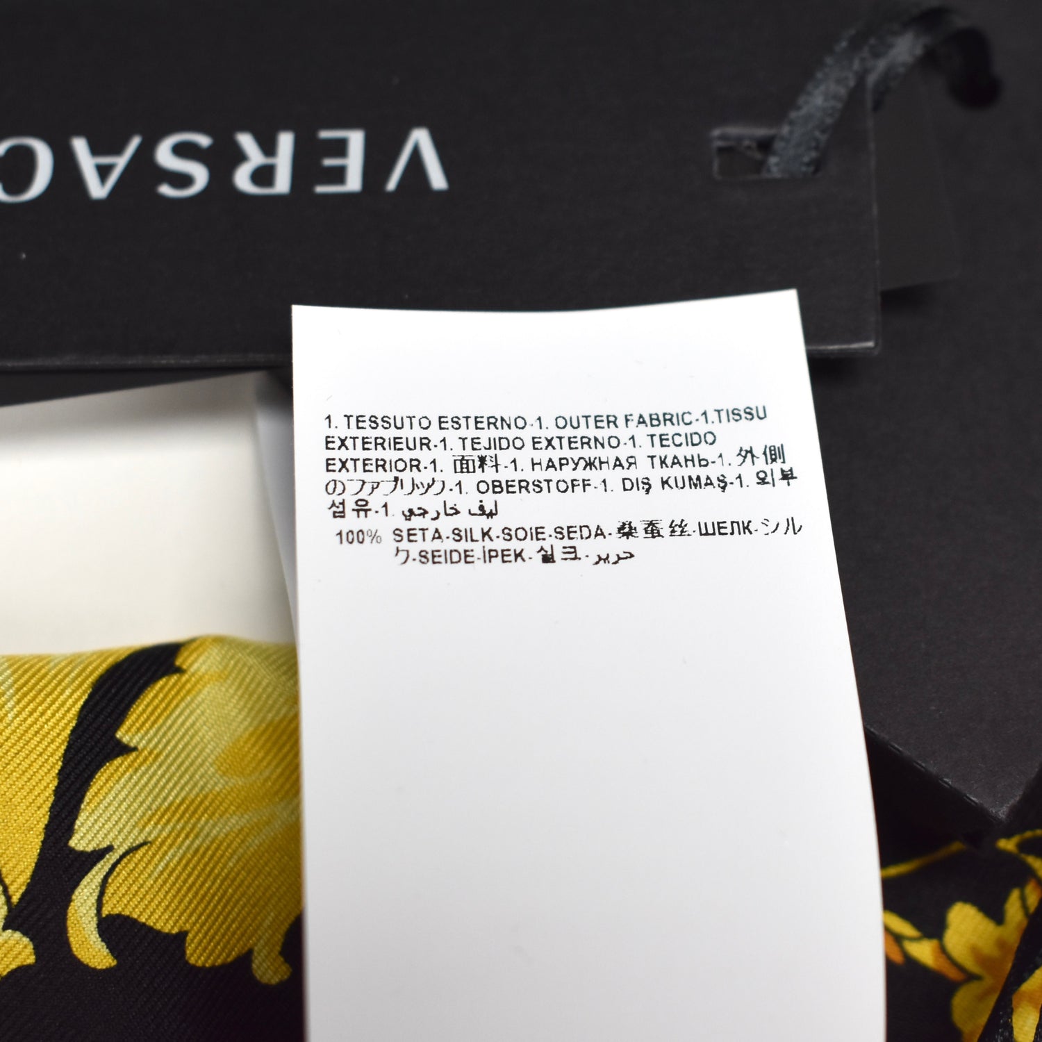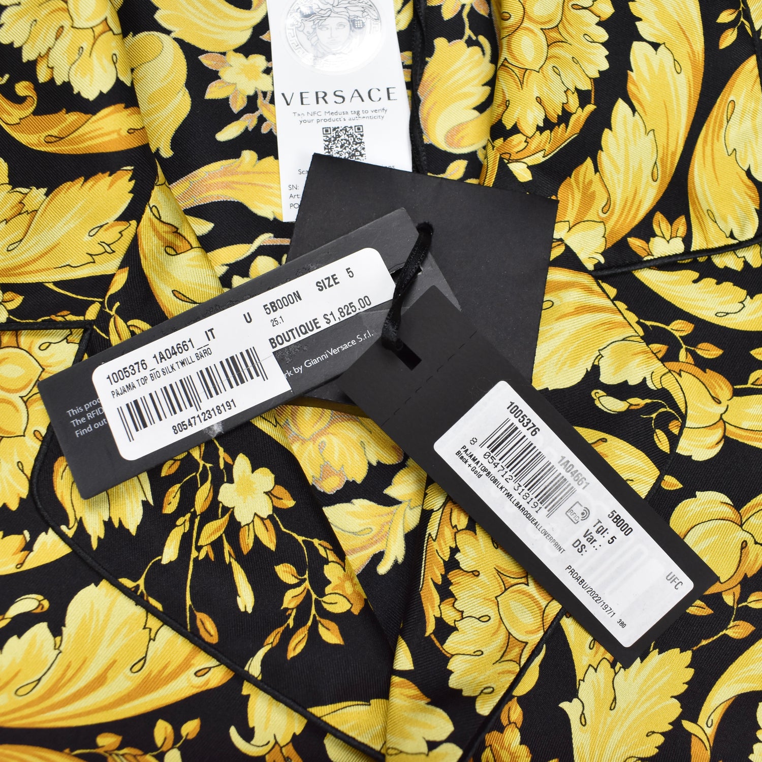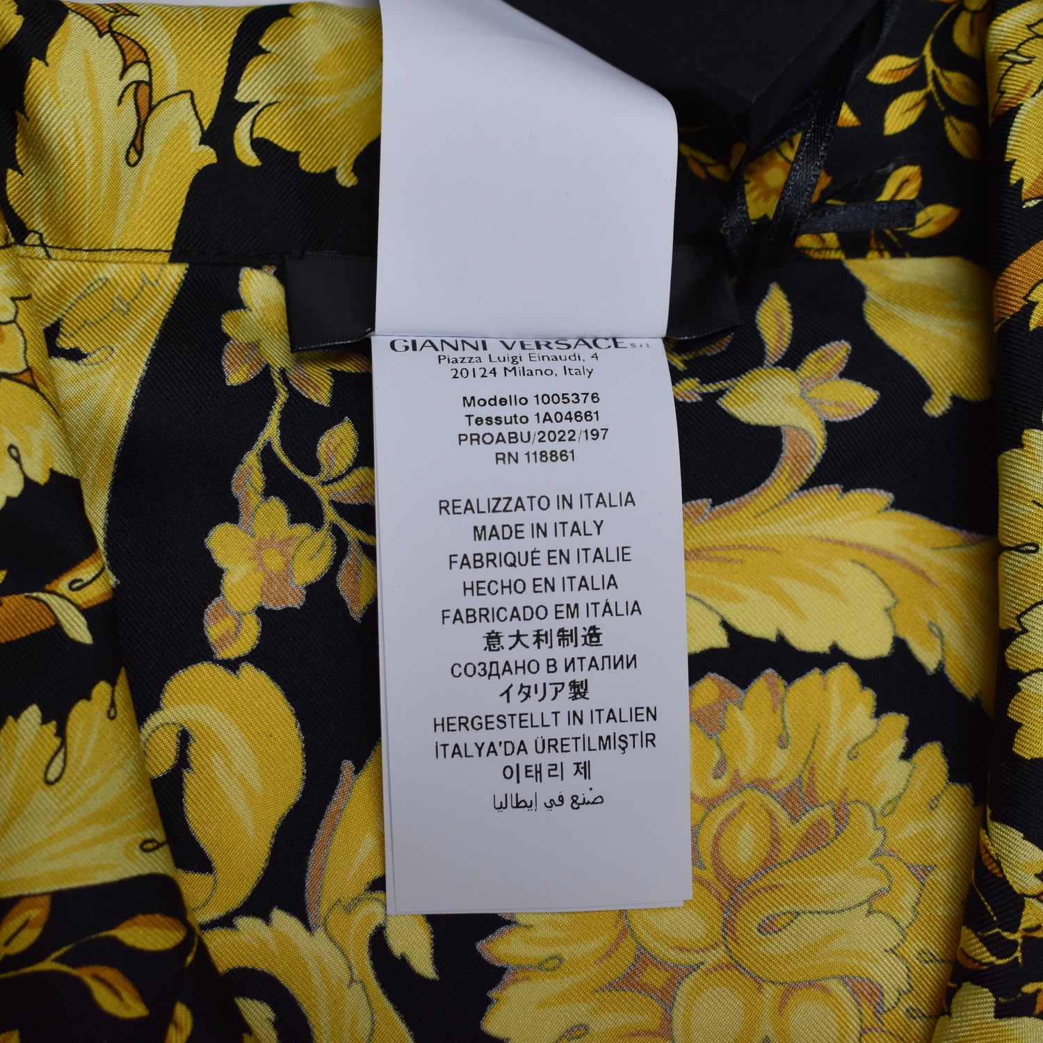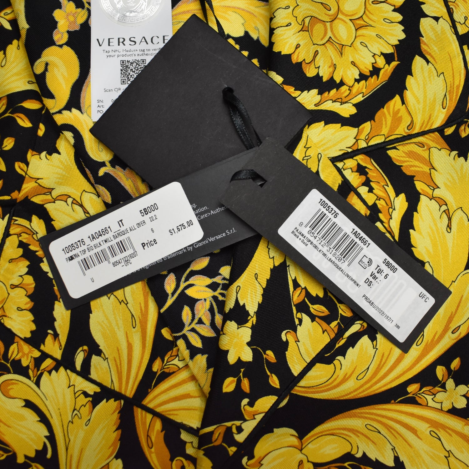 - Allover black and gold iconic Versace Barocco print